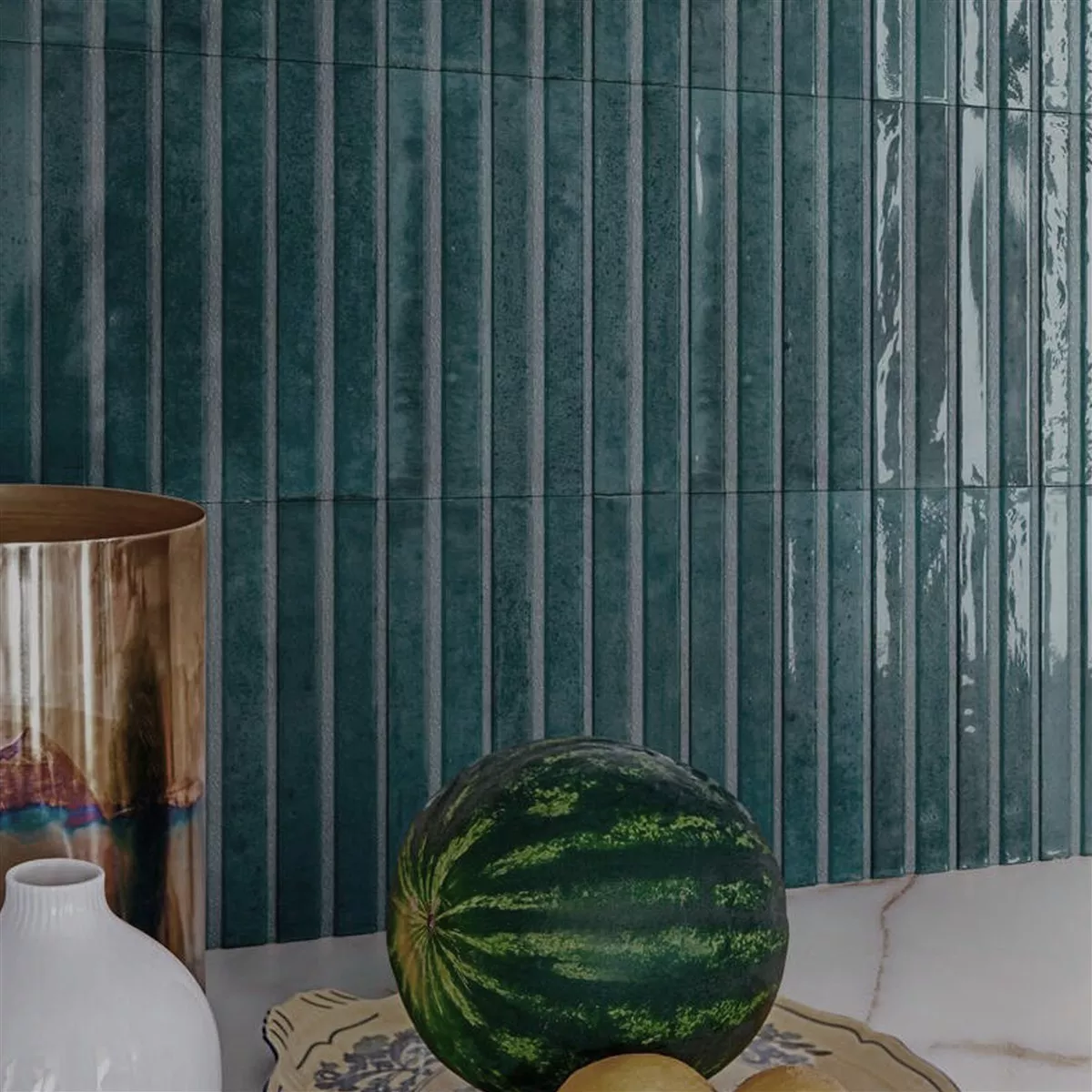 - Glaserede fliser får deres karakteristiske overfladeudseende gennem en glasur, hvor der påføres et glasagtigt lag.