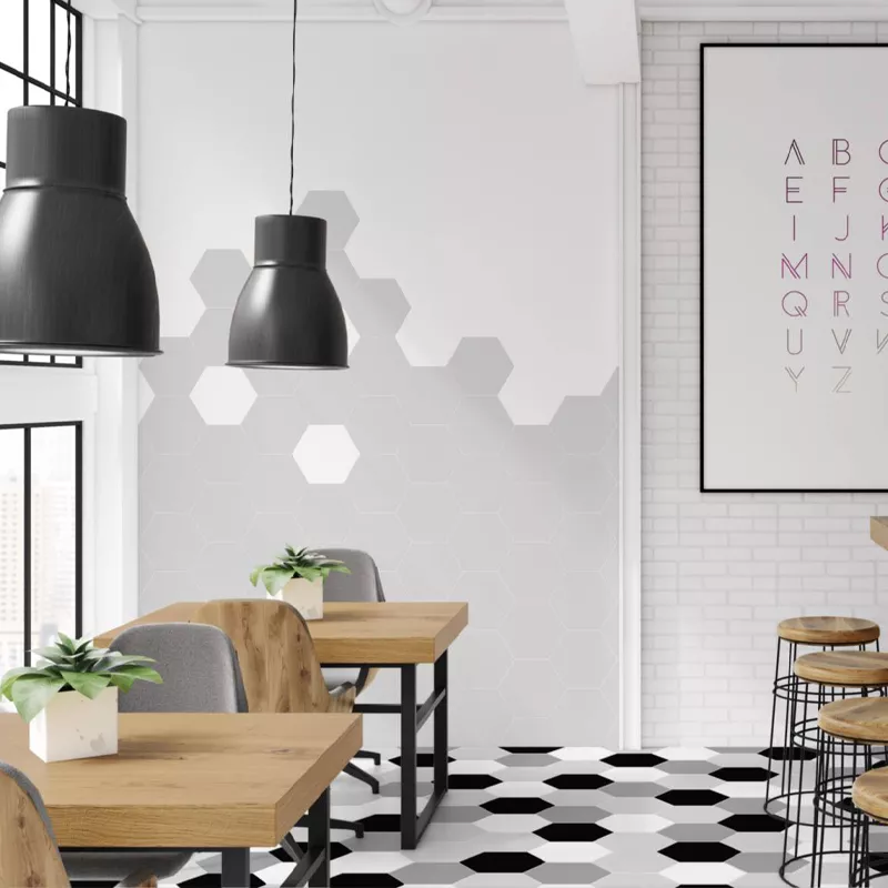 Bodenfliesen Loire Weiß Sechseck Strukturiert