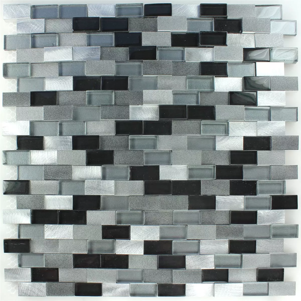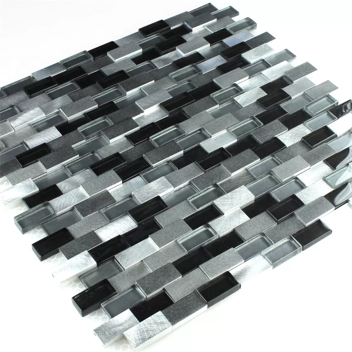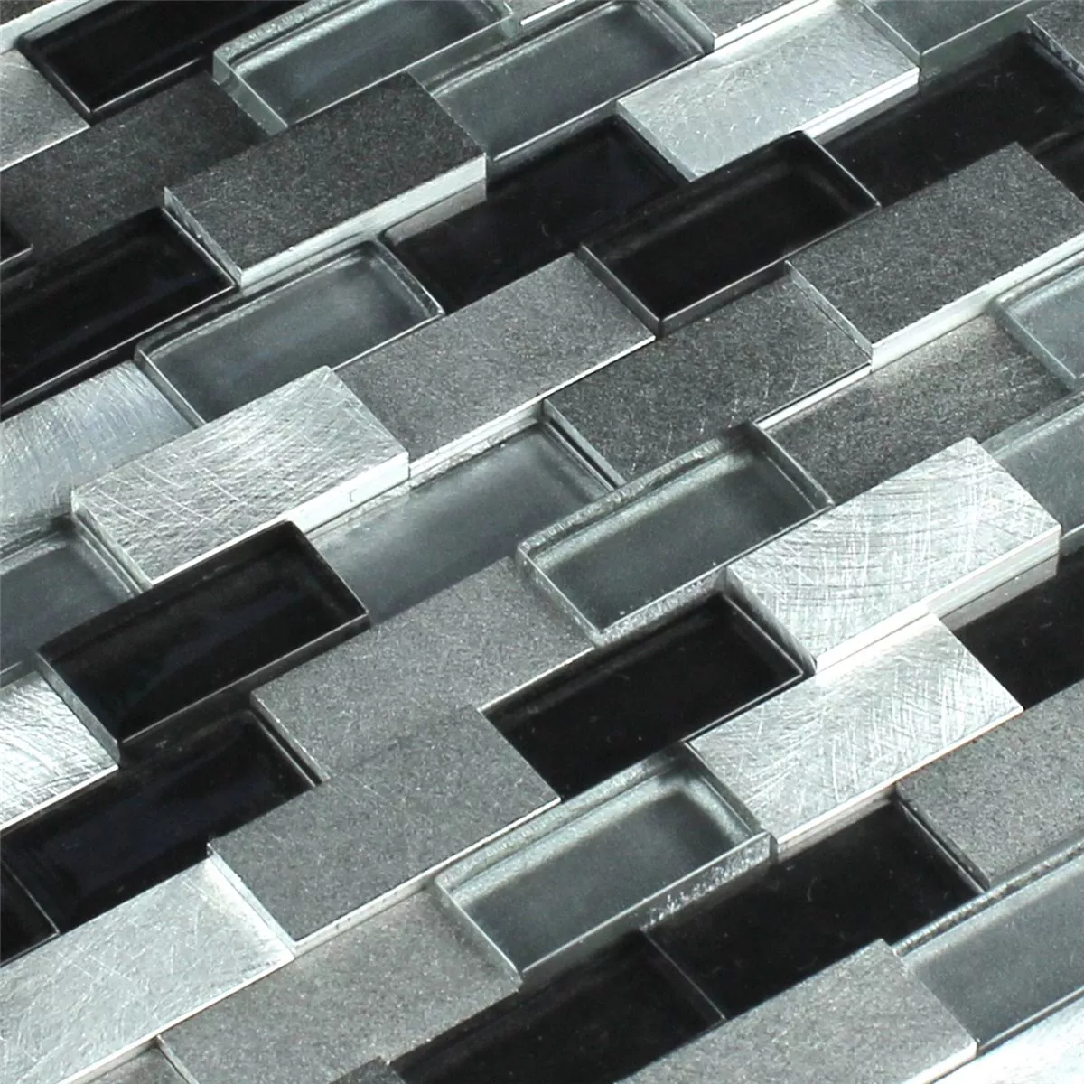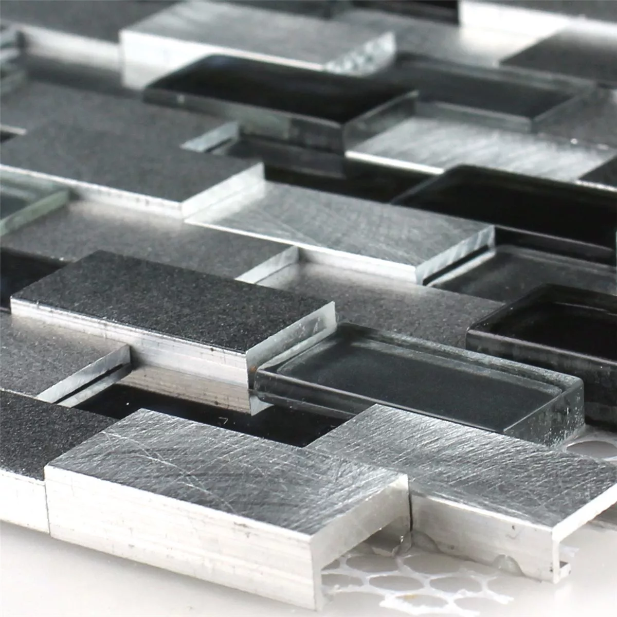 Design Mosaik Aluminium Glas 3D Sort Sølv
