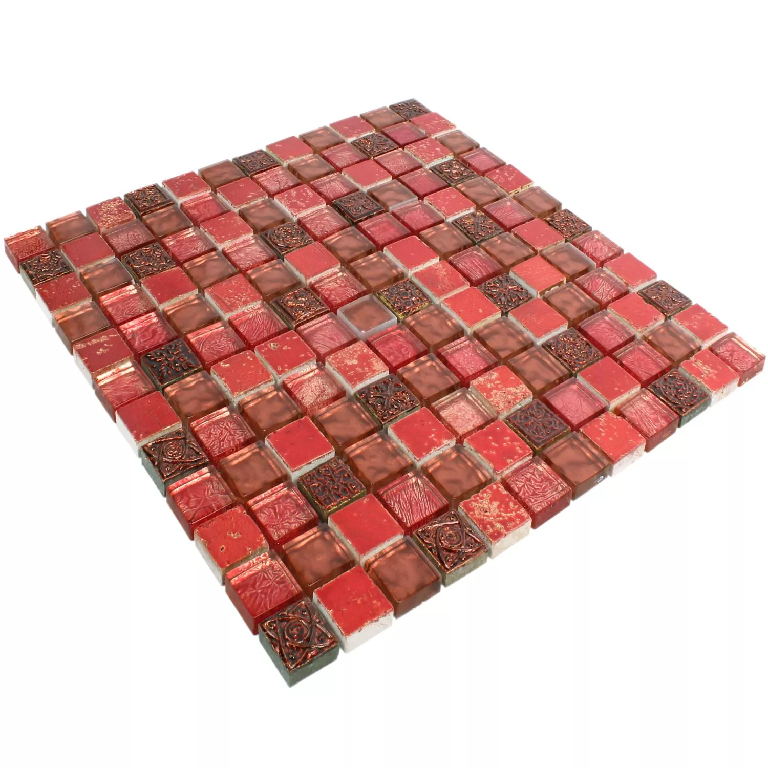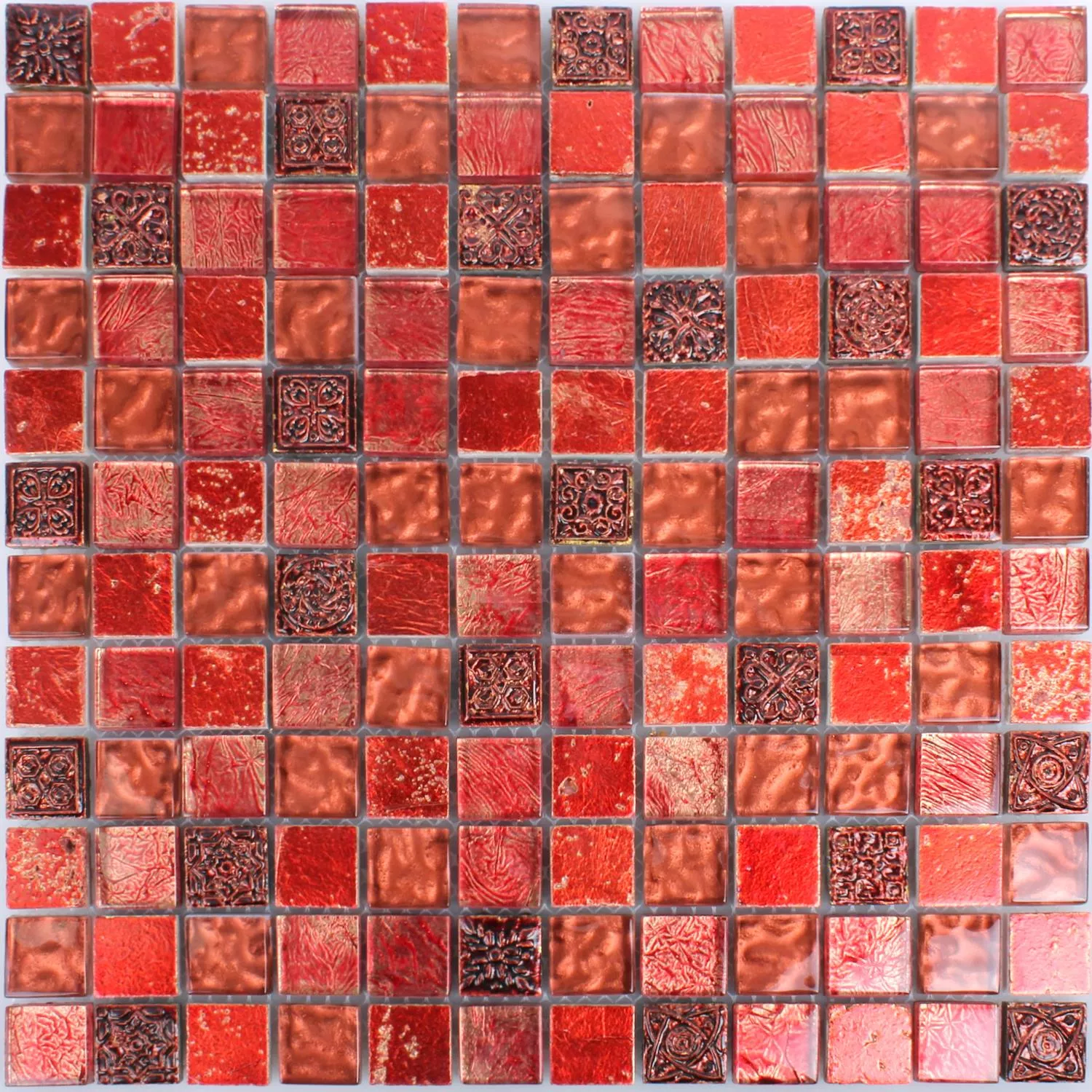 Mosaikfliser Glas Natursten Maya røde buer er mesh-bundet. Disse fliser kan bruges som border, såvel som vægfliser, der påføres over et bredt område. Lagt som en kant giver fliserne et trendy highlight og løsner op for atmosfæren i rummet. Disse fliser er lagt som brede vægfliser og giver en rustik flair. Inden du limer disse fliser, skal de først placeres på væggen for at kontrollere det ønskede farvespil. Farveintensiteten af disse fliser er især tydelig gennem refleksion af lys. Disse Maya glasmosaikfliser hjælper med dette over toilet, håndvask, badekar eller bruser og som vægbeklædning over bordpladen bag vask og komfur. at sætte accenter i form af kanter eller vægfliser. Implementeringen af kreative ideer er tilsvarende stor.