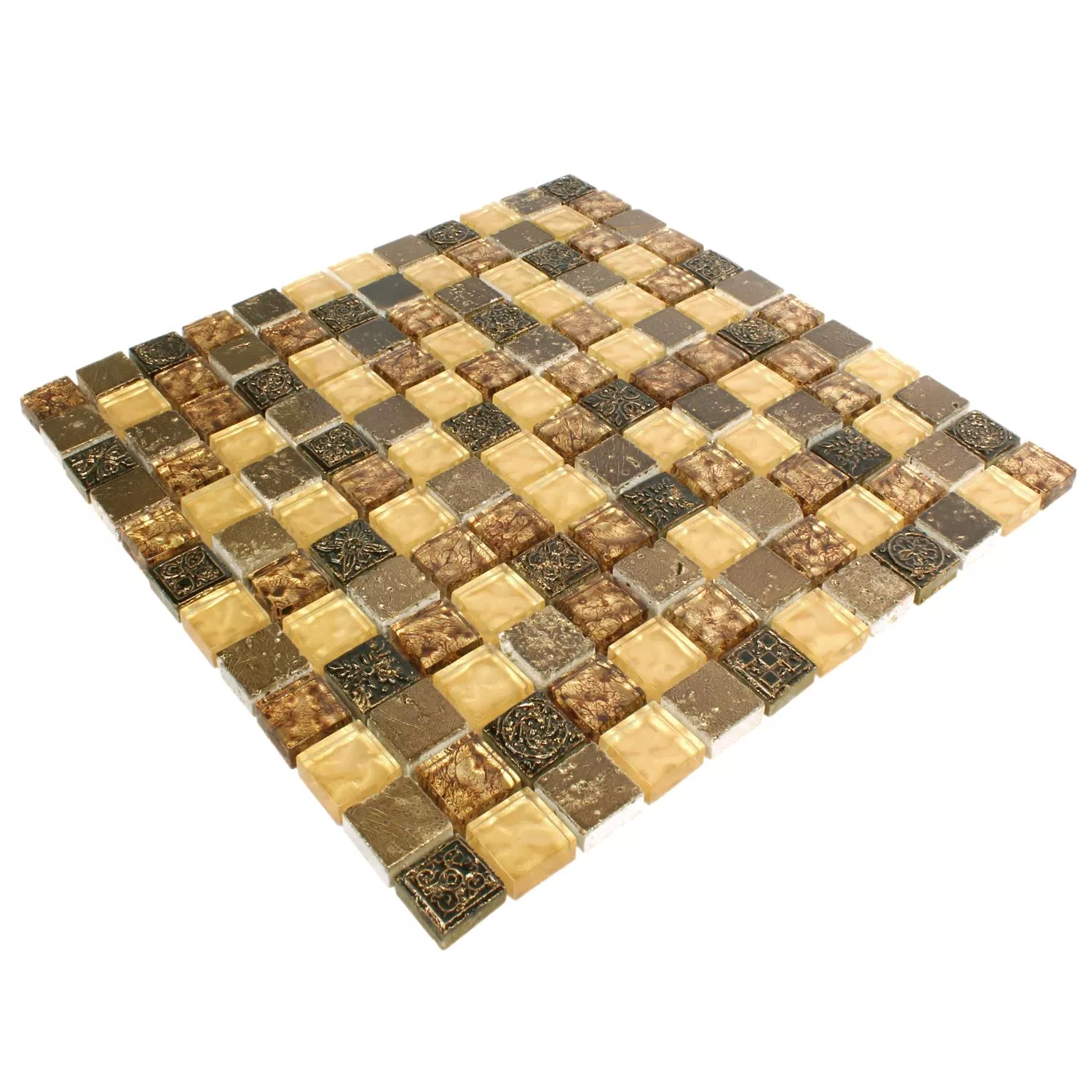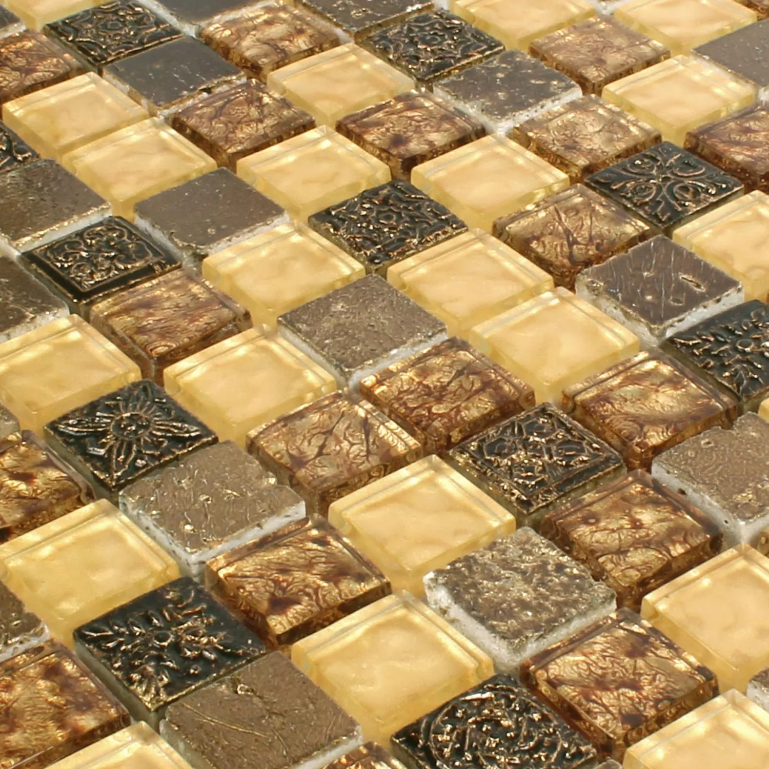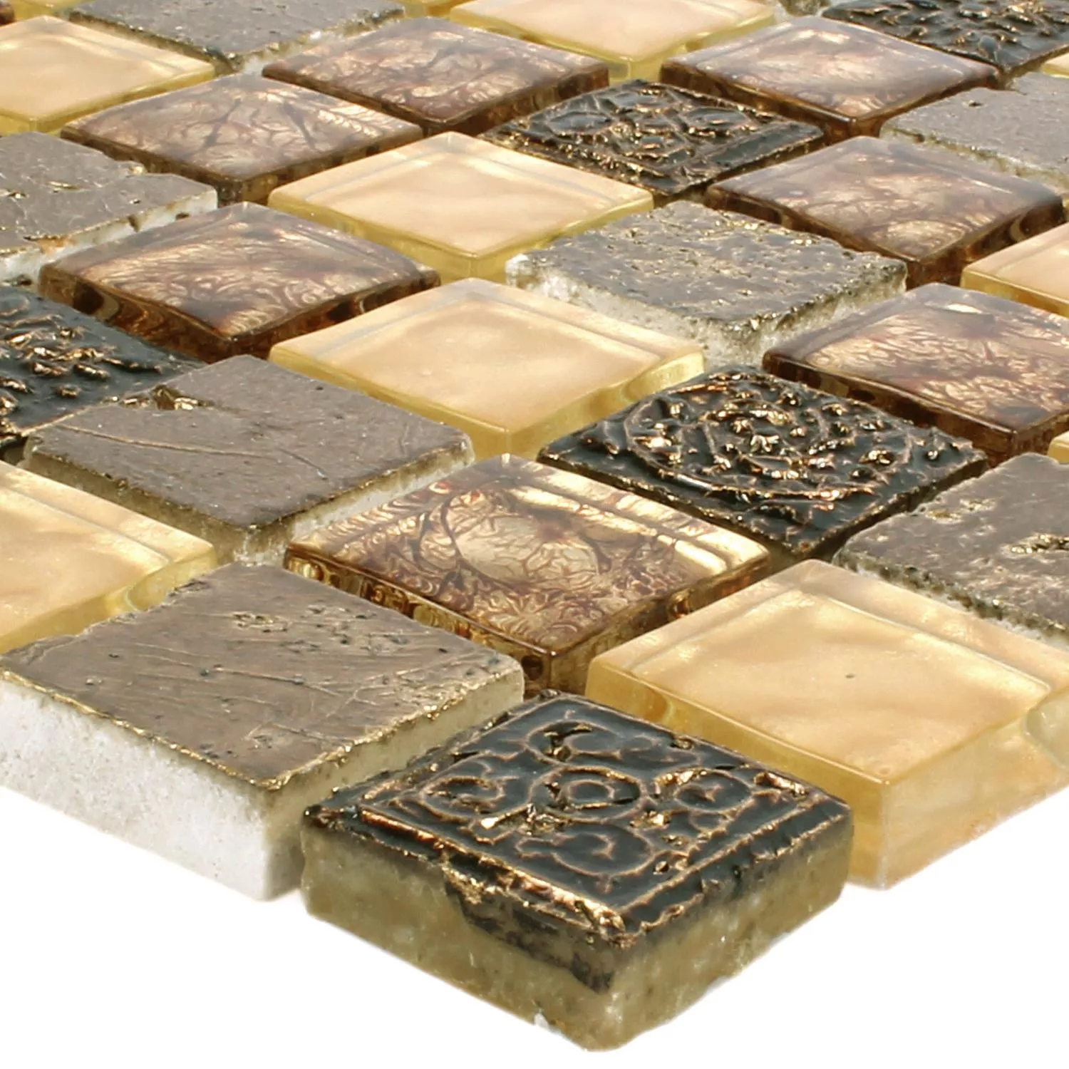 Mosaikfliser Glas Natursten Maya Guldbuer er mesh-bundet. Disse fliser kan bruges som border, såvel som vægfliser, der påføres over et bredt område. Lagt som en kant giver fliserne et trendy highlight og løsner op for atmosfæren i rummet. Disse fliser er lagt som brede vægfliser og giver en rustik flair. Inden du limer disse fliser, skal de først placeres på væggen for at kontrollere det ønskede farvespil. Farveintensiteten af disse fliser er især tydelig gennem refleksion af lys. Disse Maya glasmosaikfliser hjælper med dette over toilet, håndvask, badekar eller bruser og som vægbeklædning over bordpladen bag vask og komfur. at sætte accenter i form af kanter eller vægfliser. Implementeringen af kreative ideer er tilsvarende stor.