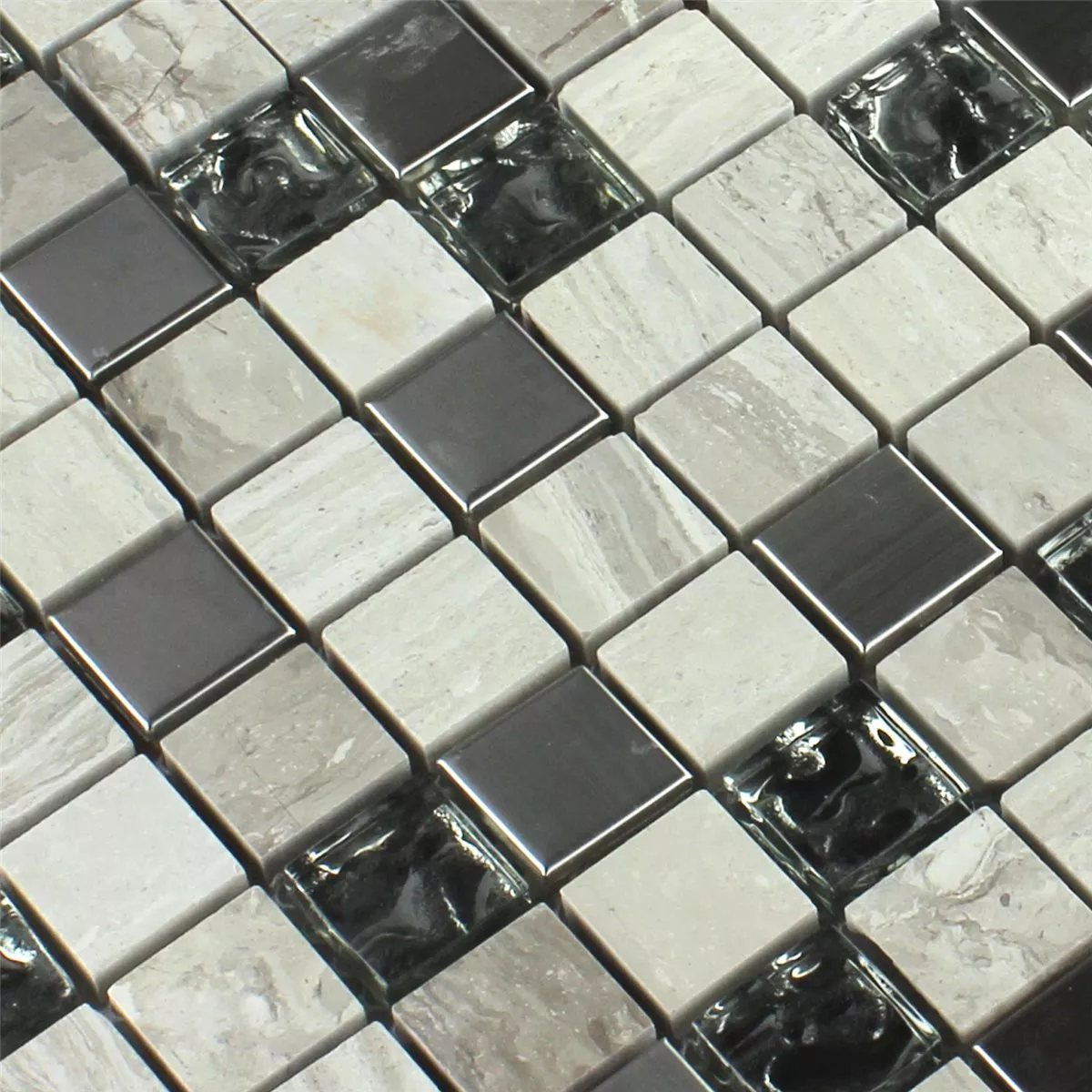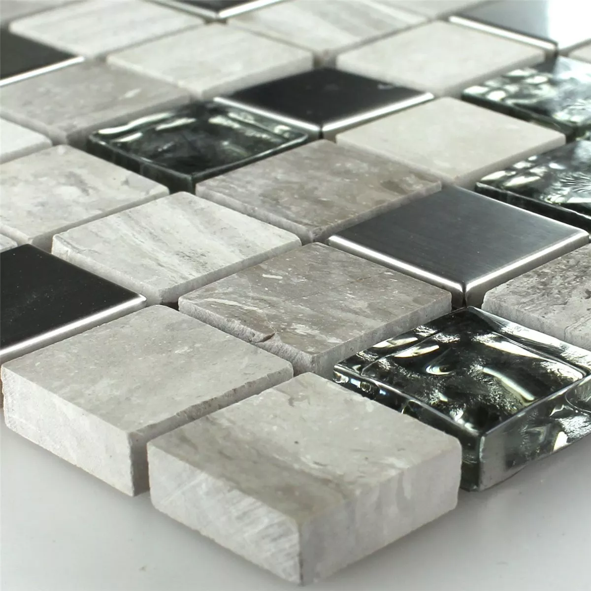 Prøve Mosaik Fliser Glas Rustfrit Stål Gra