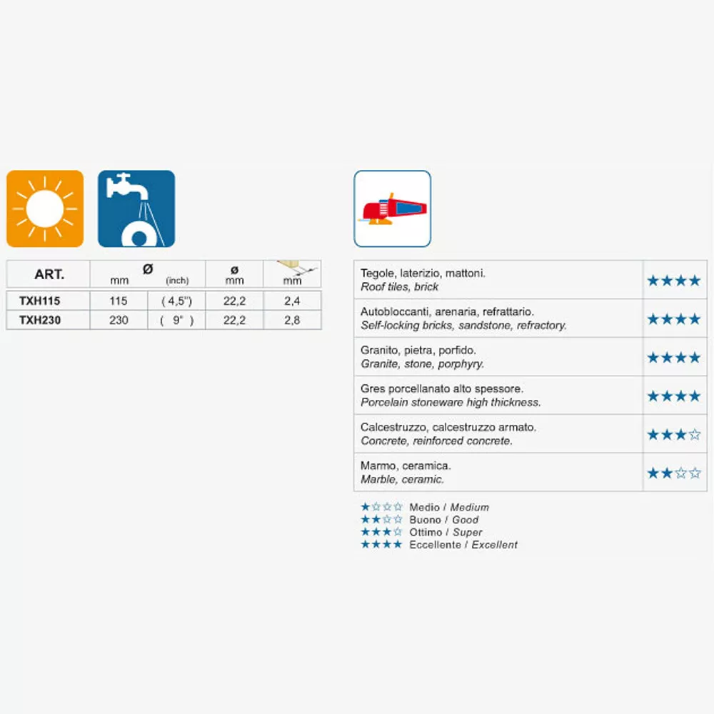 Diamantskive TXH - Hård Sten, Granit, Vulkansk Sten, Porcelæn, Beton (230 Mm)