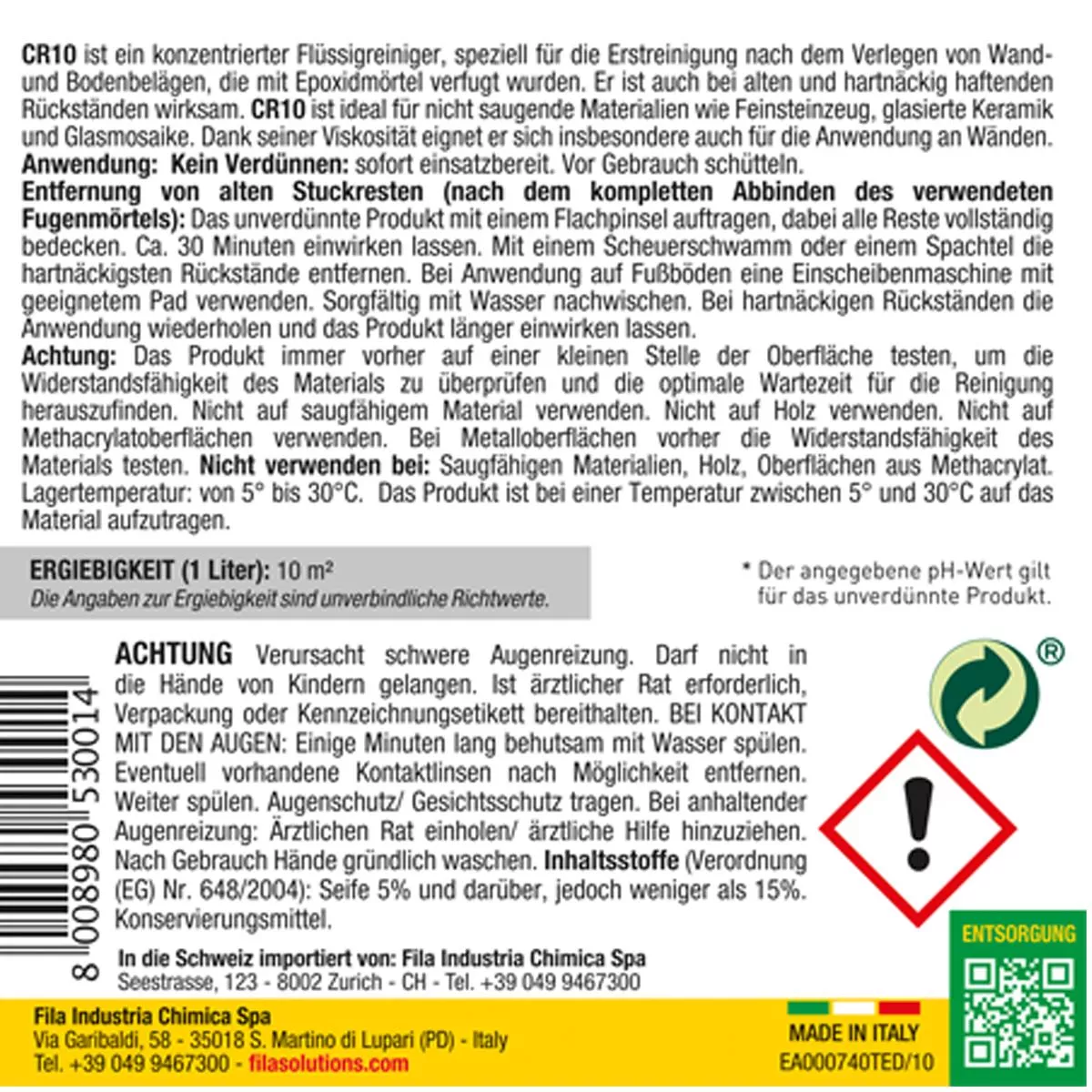 - Højviskositet flydende rengøringsmiddel til rengøring af overflader fra rester, pletter og kanter af epoxymørtel.