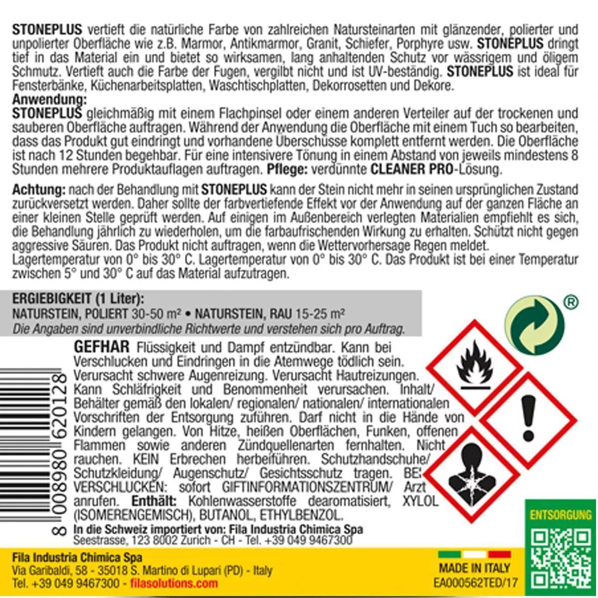 - Beskytter polerede, slebne, naturlige og antikke natursten og fremhæver deres originale farve.