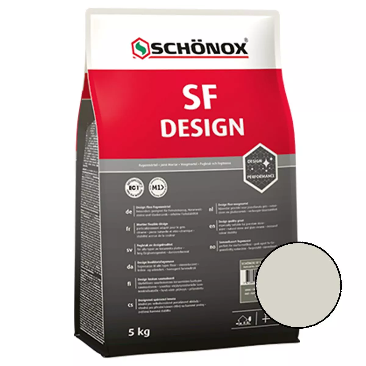 specielt til fugning af storformat porcelænsstentøjsfliser, natursten og glaskeramik indendørs og udendørs på vægge og gulve. Fås i forskellige farveindstillinger. SCHÖNOX SF DESIGN er optimeret til hurtig styrkeopbygning, har øget farvestabilitet, meget god sidehæftning og øget slidstyrke.