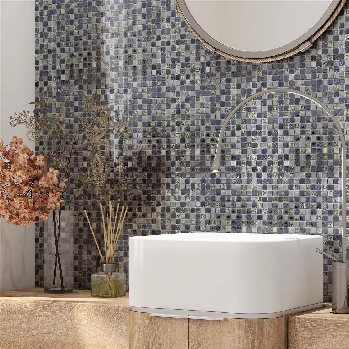 På grund af deres struktur er disse mosaikfliser ikke egnede til brug i våde områder. Ikke desto mindre tilbyder de en alsidig og æstetisk tiltalende løsning til indendørs brug. Bring et tidløst og elegant touch til dine rum med glasmarmormosaikfliser Champion Black Grey Mix og design dem efter dine individuelle ideer.
