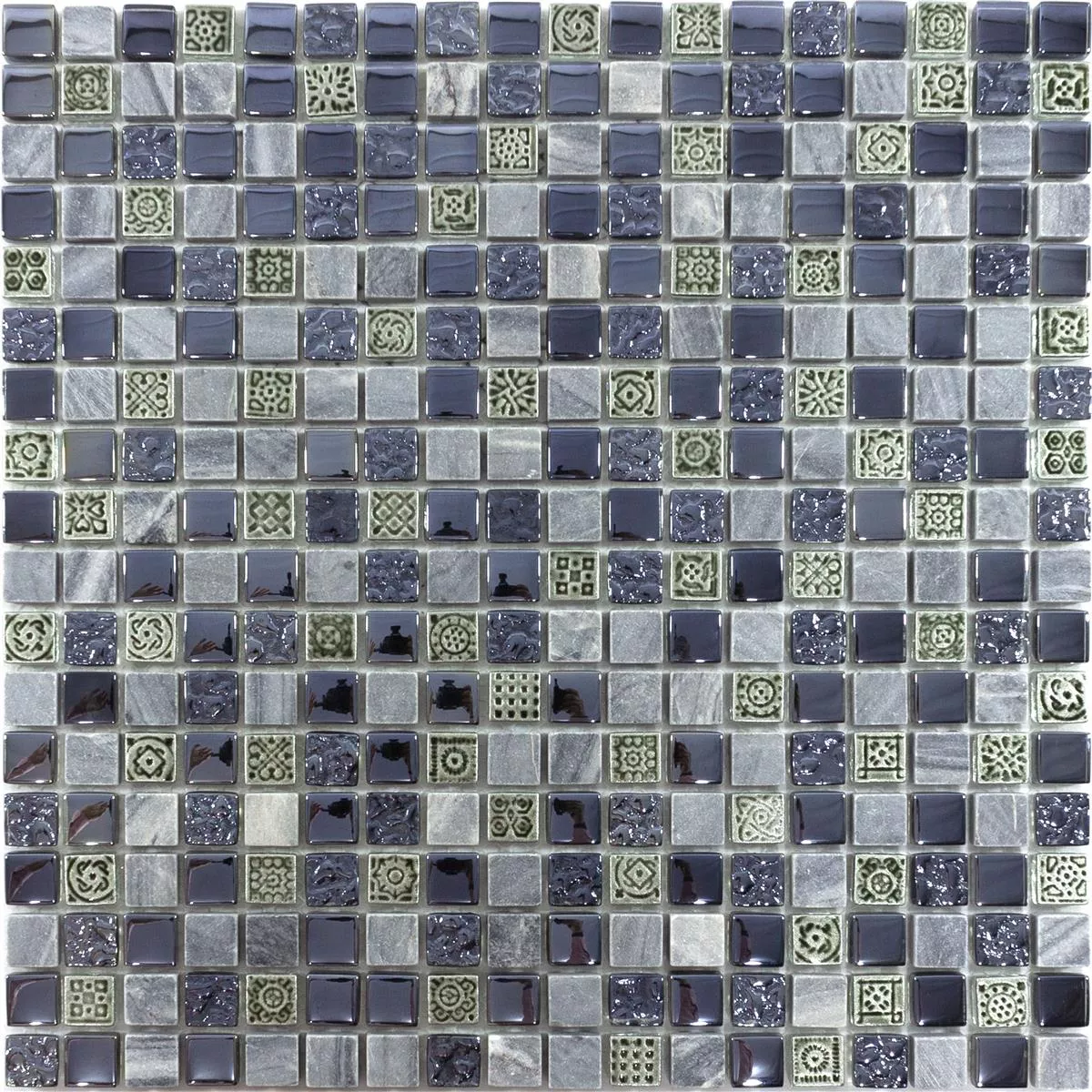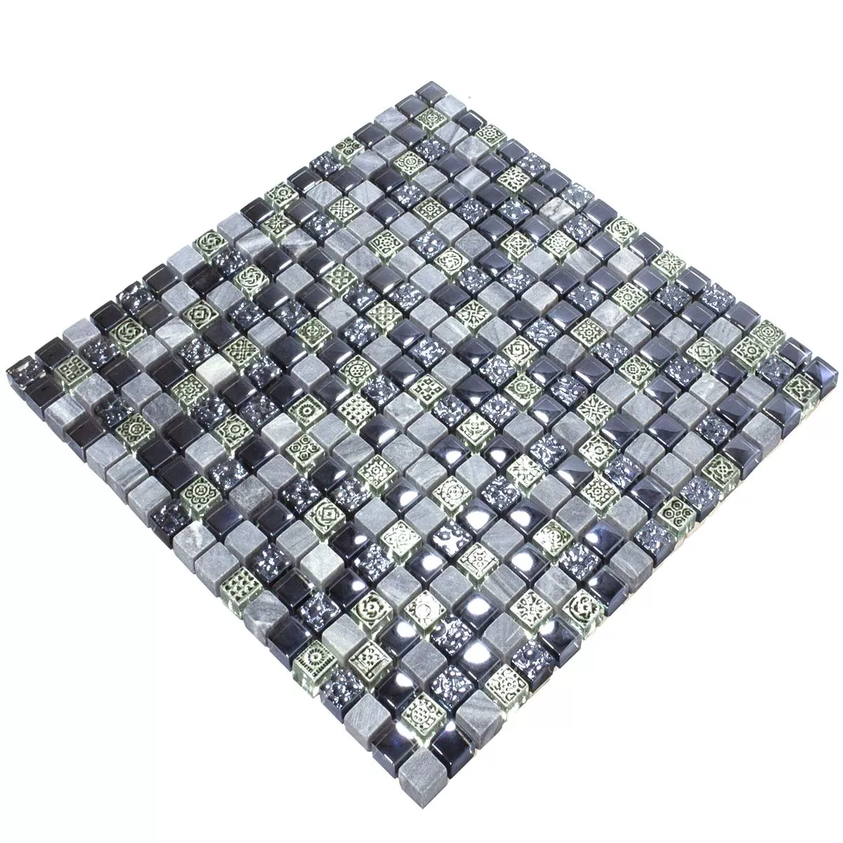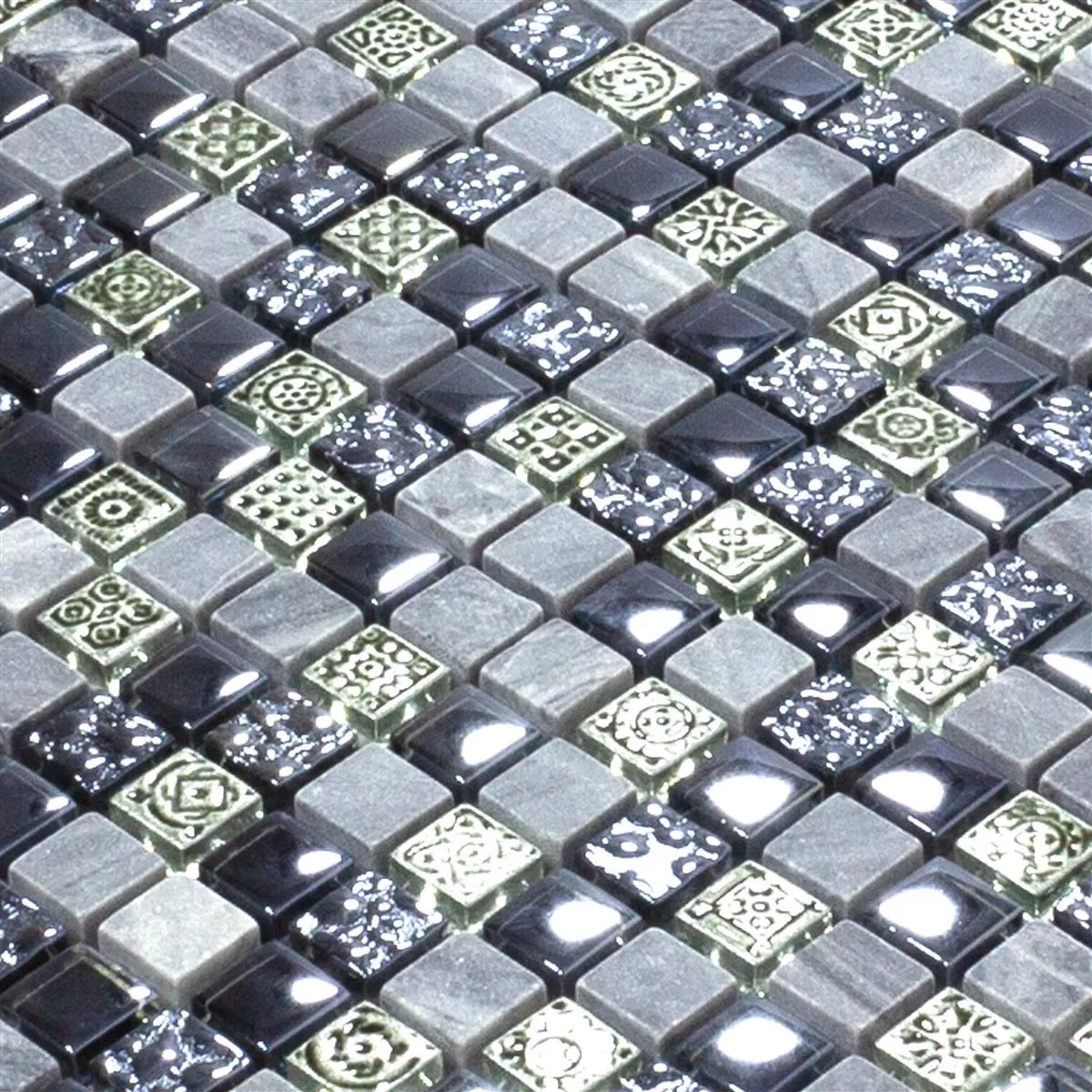 Glas Marmor Mosaik Fliser Champion Sort Gra Mix