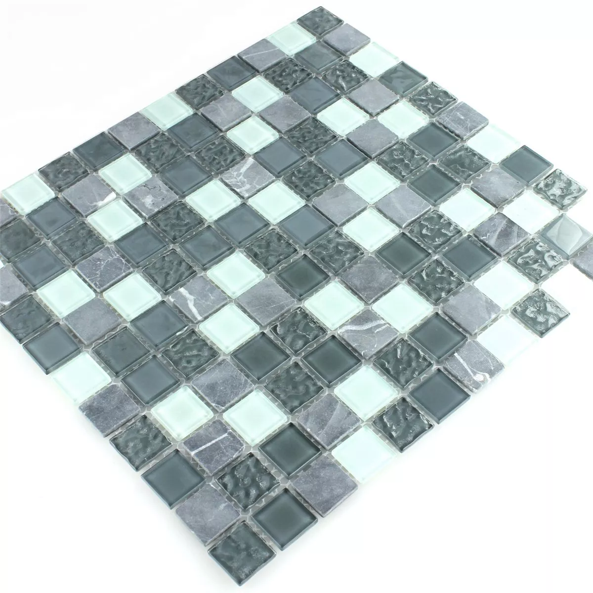Glas Marmor Natursten Mosaik Fliser Epsilon Gra Hvid