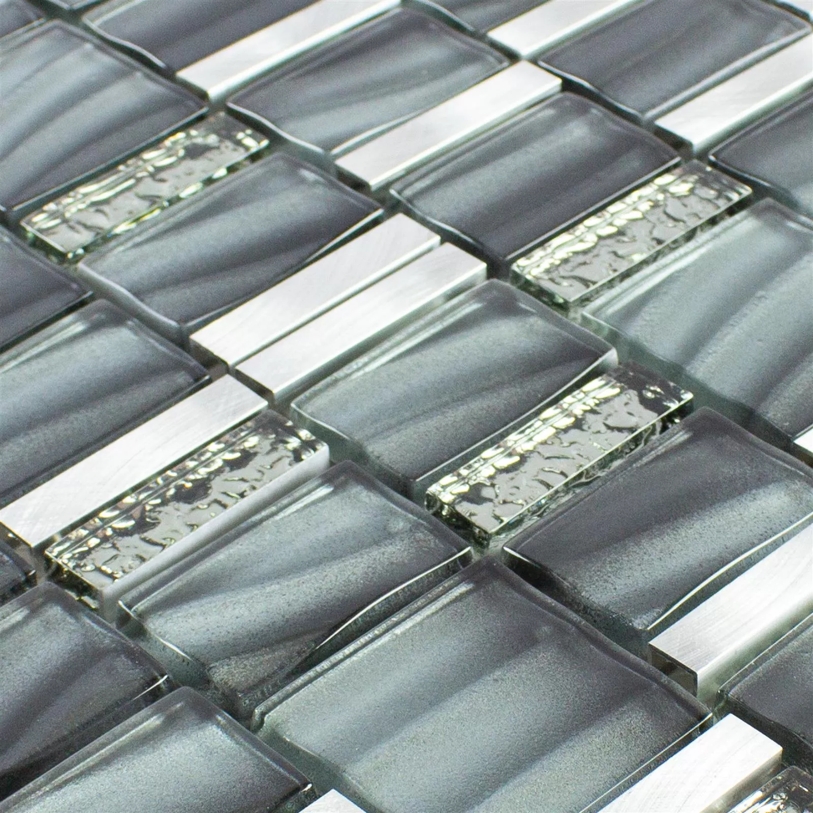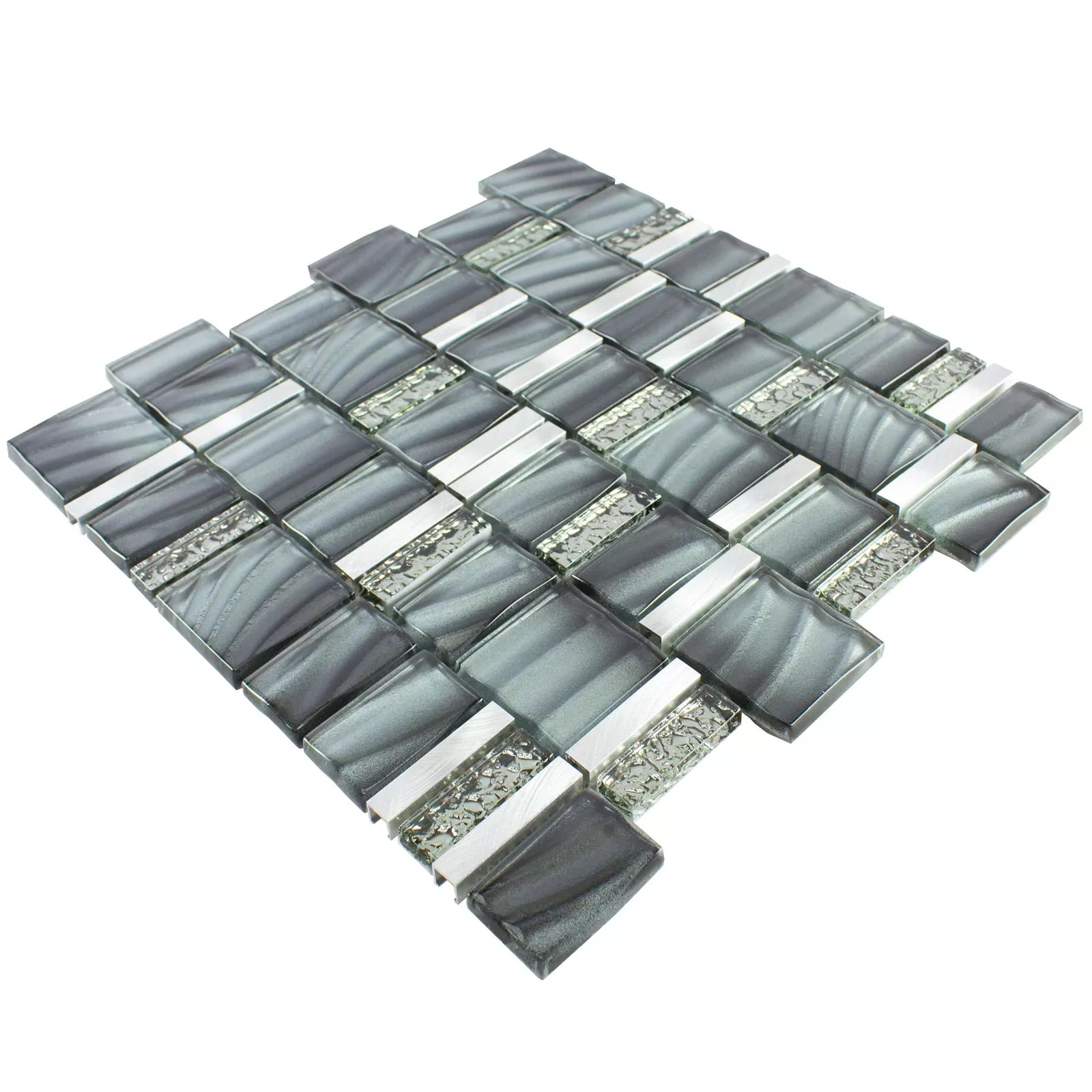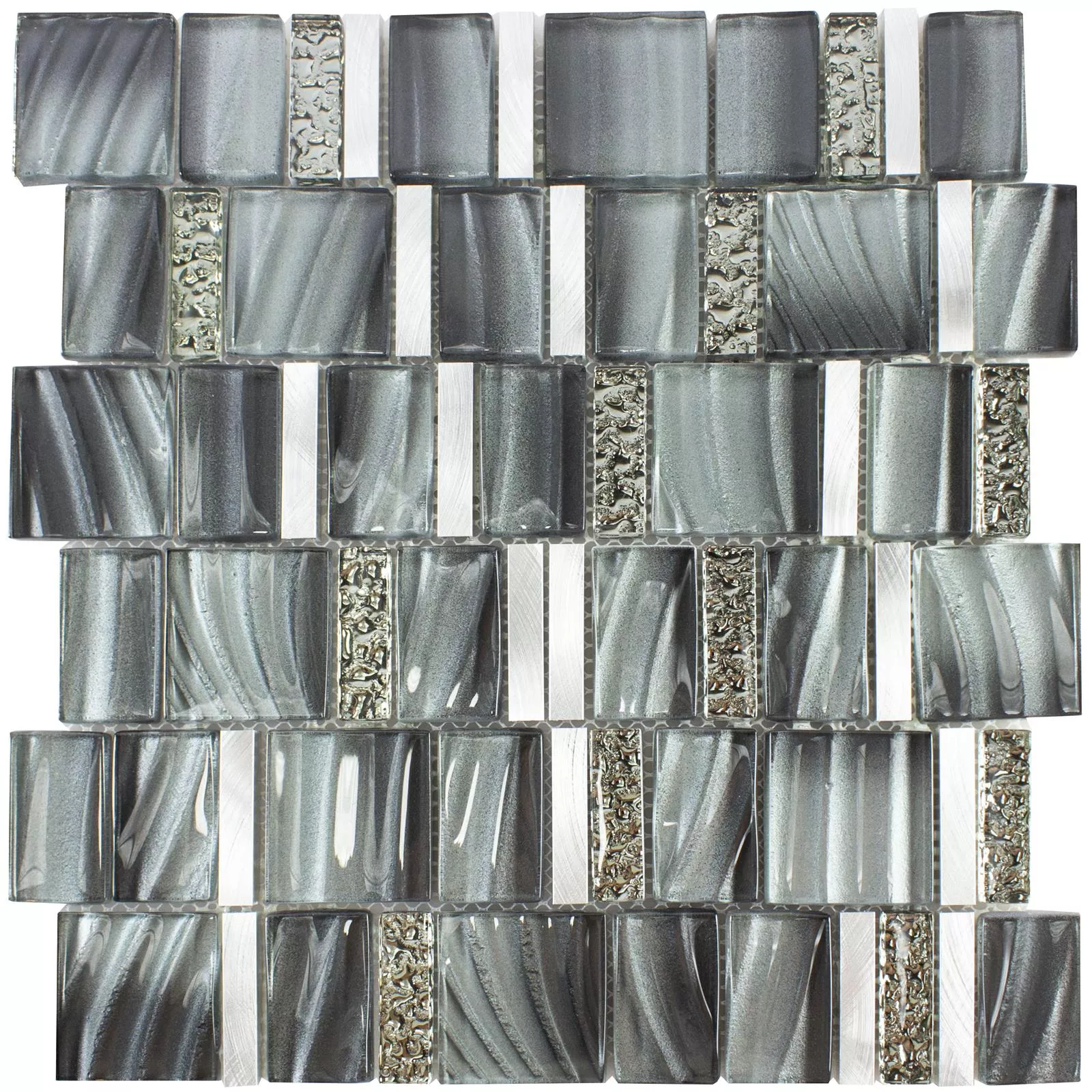 Glas Metal Mosaik Fliser Union Gra Sølv