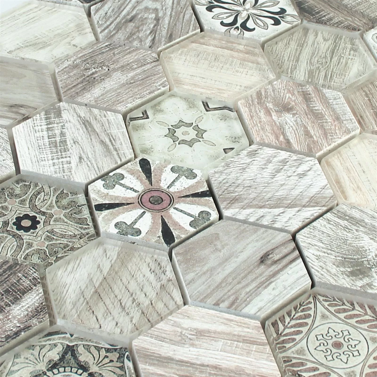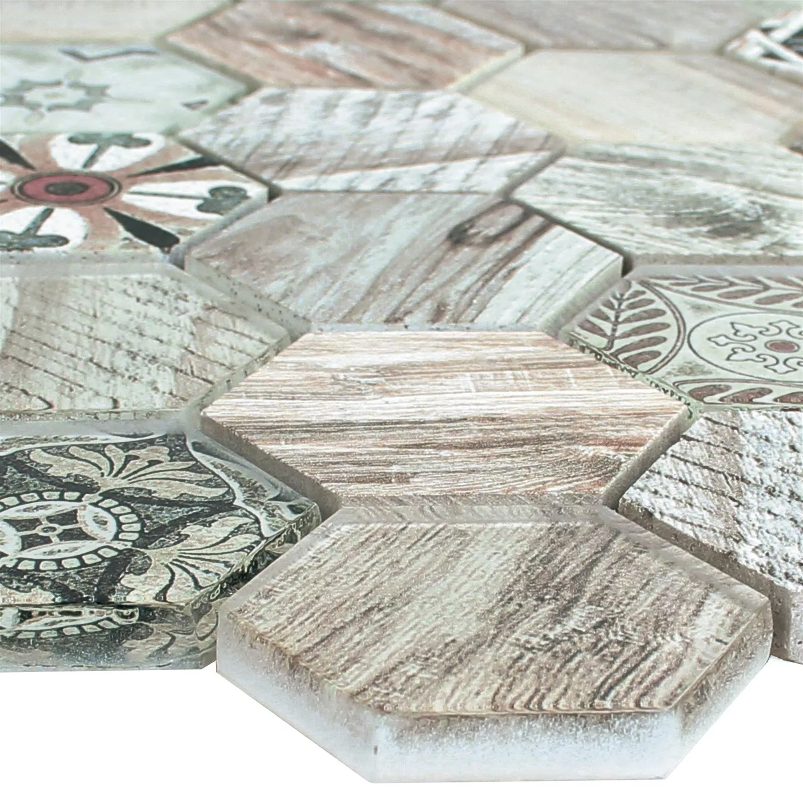 Glas Natursten Mosaik Eritrea Imiteret Træ Lysbrun Beige
