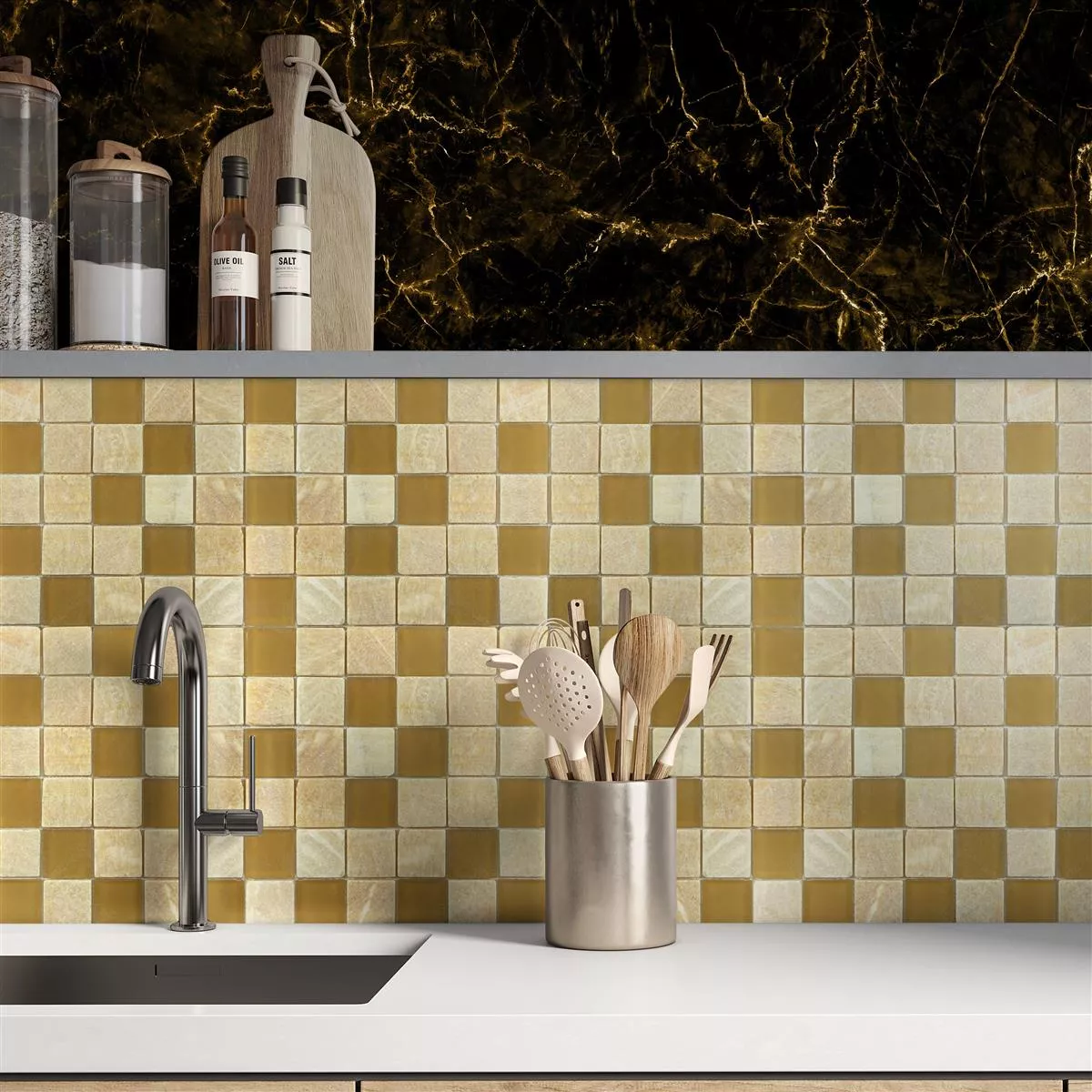 Glas Natursten Mosaik Fliser Aurelius Brun Beige Mix