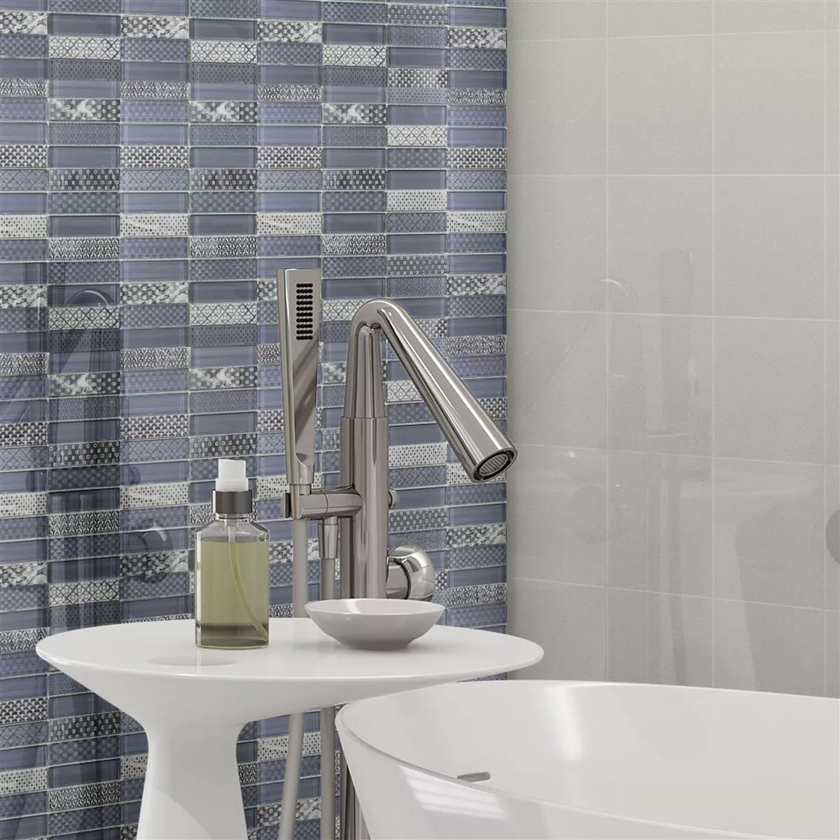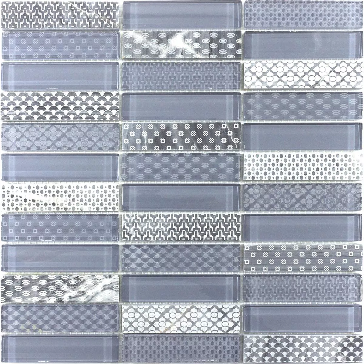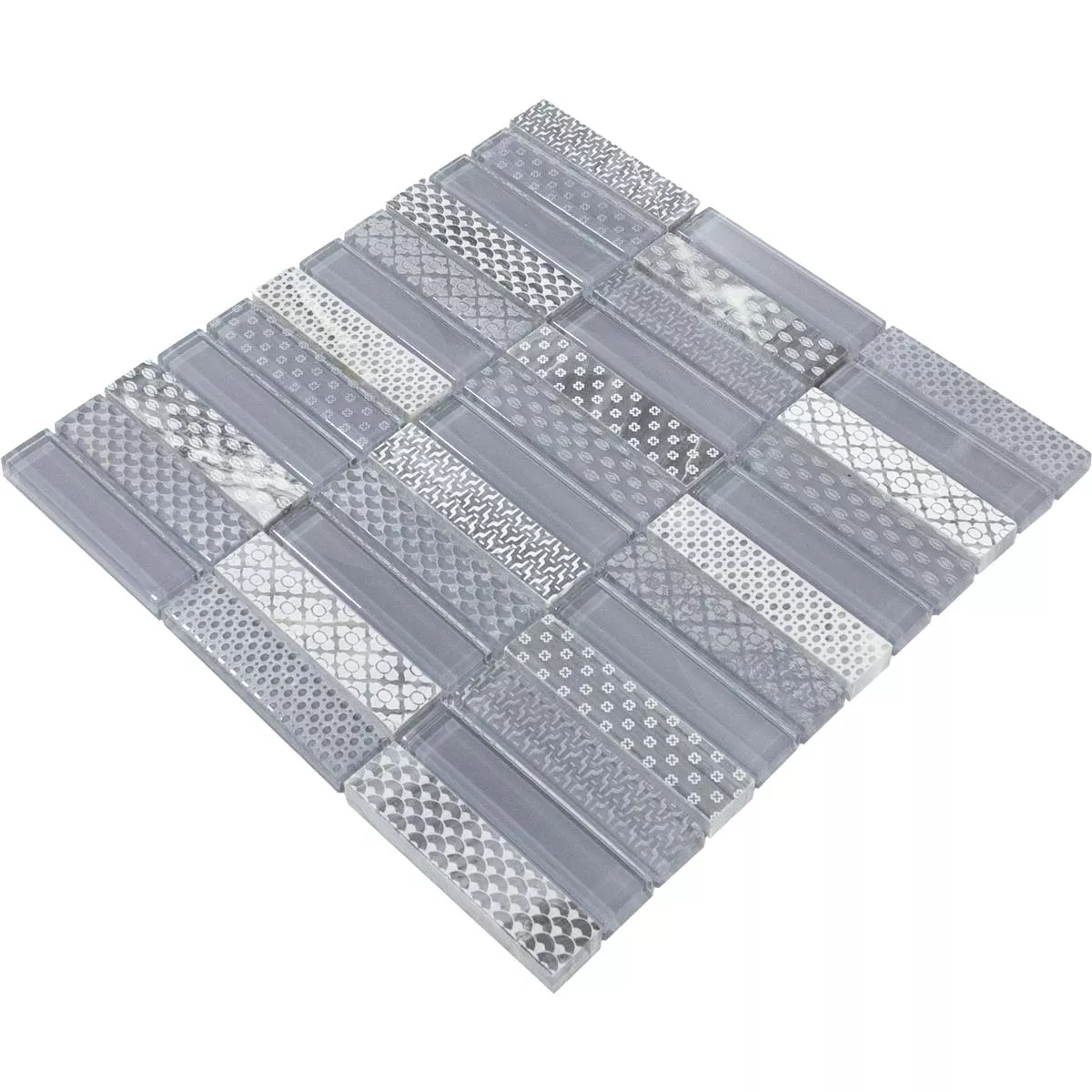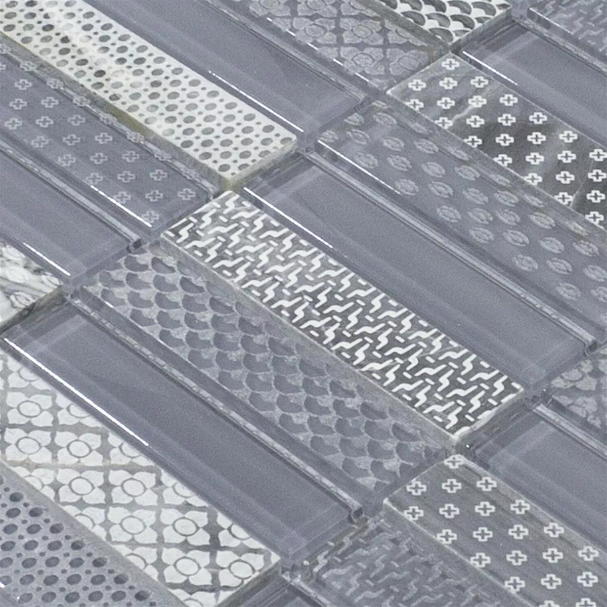 Glas natursten mosaik fliser Celestiana Ornament Brick Mix - æstetik i grå.