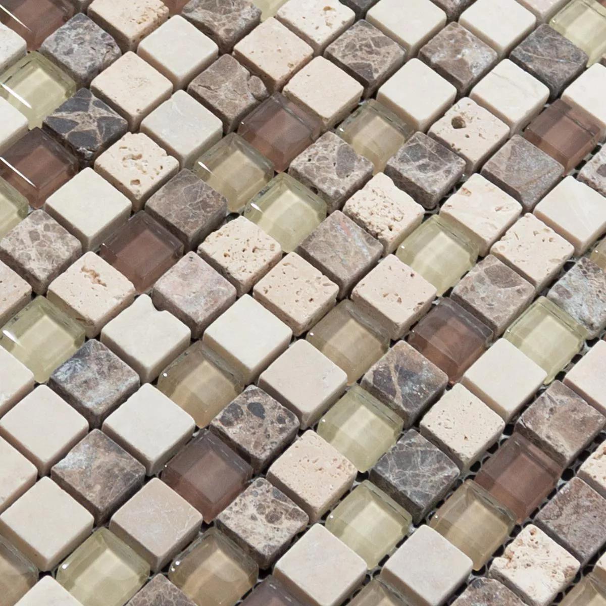 Giv dine vægge et elegant og tidløst look med Harbin glasmosaikken . I de varme, naturlige farver brun og beige kombinerer denne mosaik de ædle materialer natursten og glas , hvilket skaber et stilfuldt naturstenslook . Blandingen af blanke og matte overflader skaber et unikt look, der reflekterer lyset på en speciel måde og skaber en livlig, men harmonisk atmosfære i dit værelse.