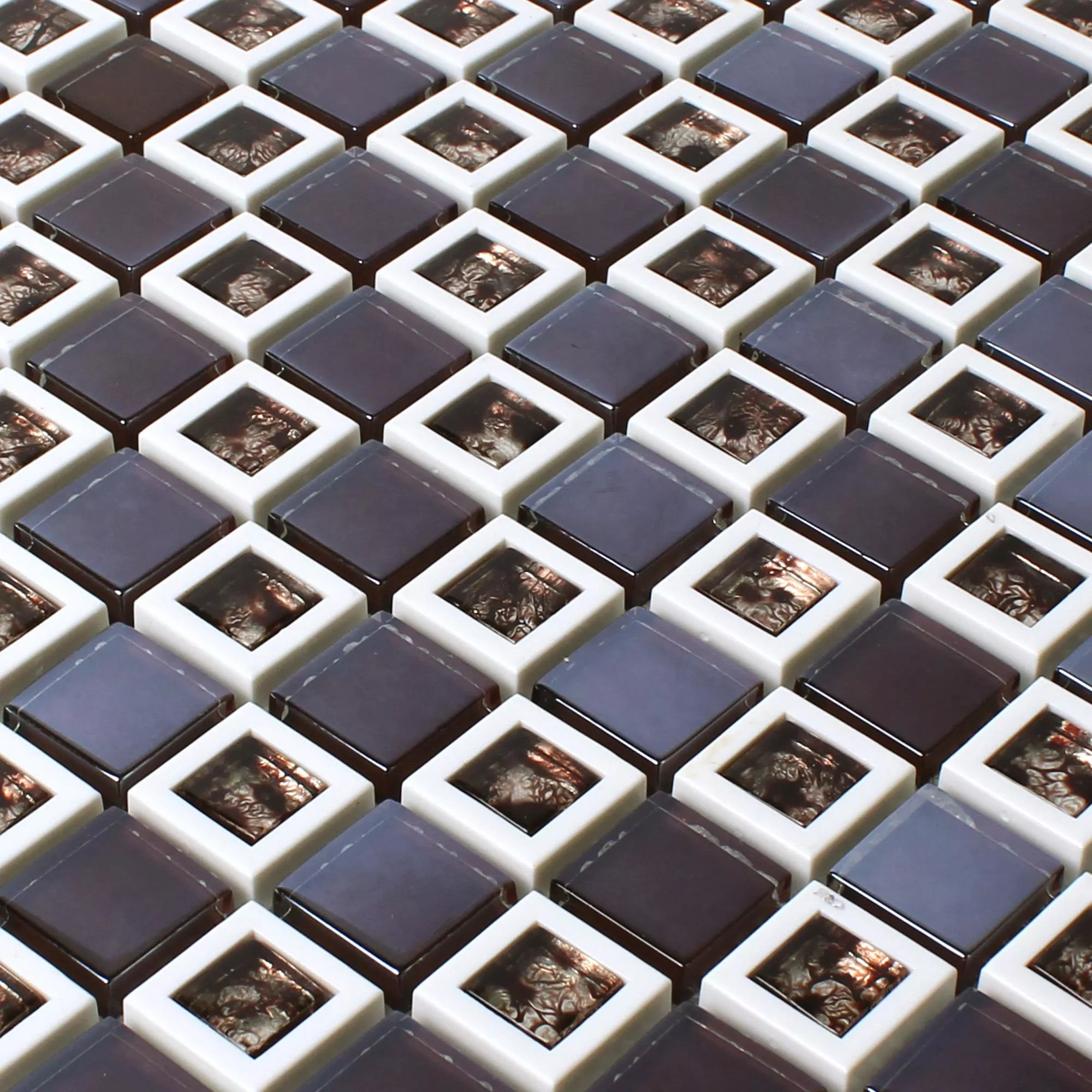 Glasplastikmosaikfliserne "Anatolia" i brun er vægfliser. Fliserne fås i fire forskellige pakker, som er forskellige i farve. Der er to lyse og to mørke varianter.