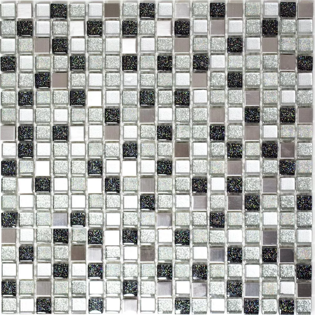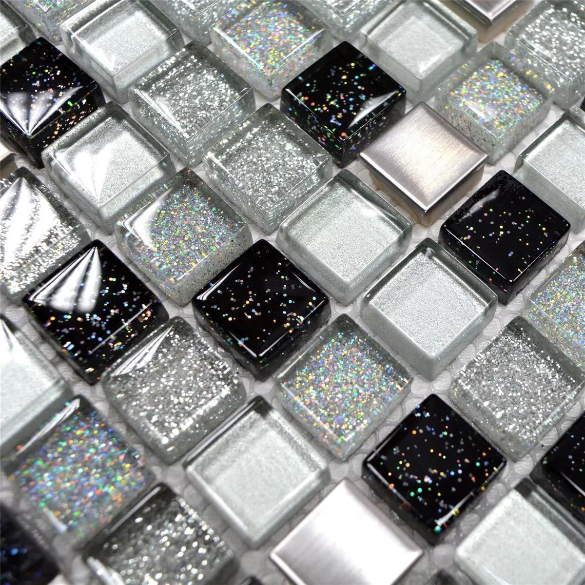 Glas Rustfrit Stål Metal Mosaik Fliser Sølv Sort