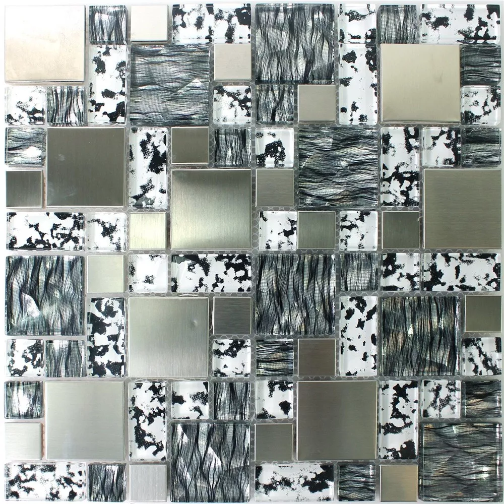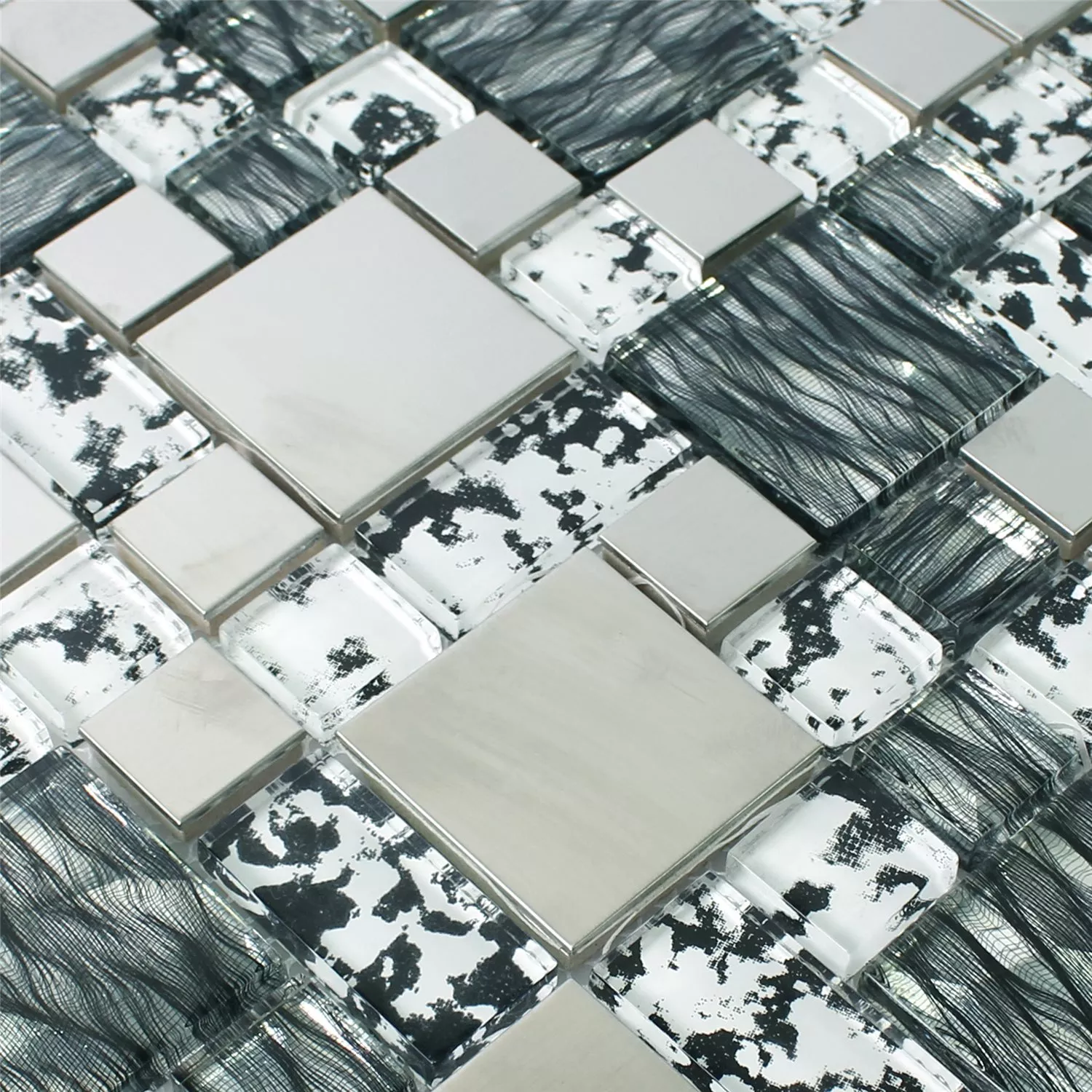 Glas Rustfrit Stål Mosaik Rio Sort Sølv Hvid