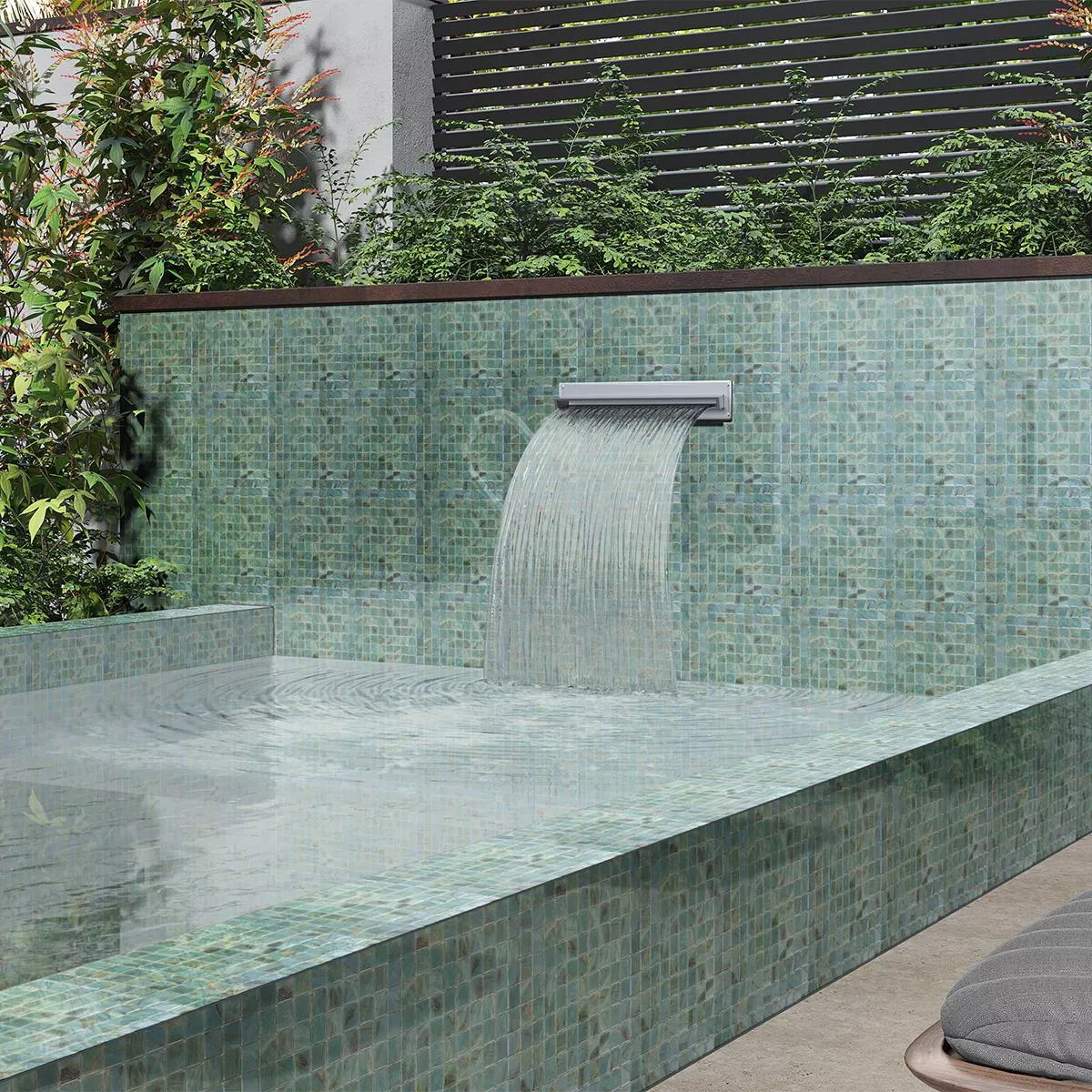 Alassio poolmosaikfliser i turkis sætter farverige accenter og bringer et frisk pust ind i dit design. Med en måtte, der måler 31,6 x 31,6 cm og en tykkelse på 4 mm, er denne flise ideel til at dække vægge og gulve. Flisen er lavet af højkvalitetsglas og Ecoglas og imponerer med sit skinnende naturstenslook, som giver ethvert rum et elegant og alligevel livligt præg.
