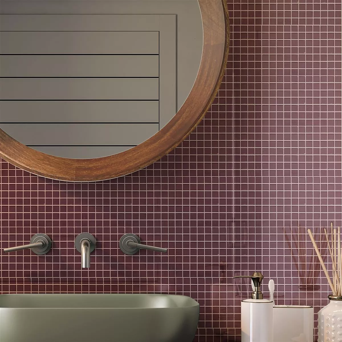 Bring et strejf af elegance og varme til dine værelser med Anastasia mosaikflis i vinrød. Denne glasflise imponerer med sin blanke overflade, som giver rummet et luksuriøst og levende udtryk.