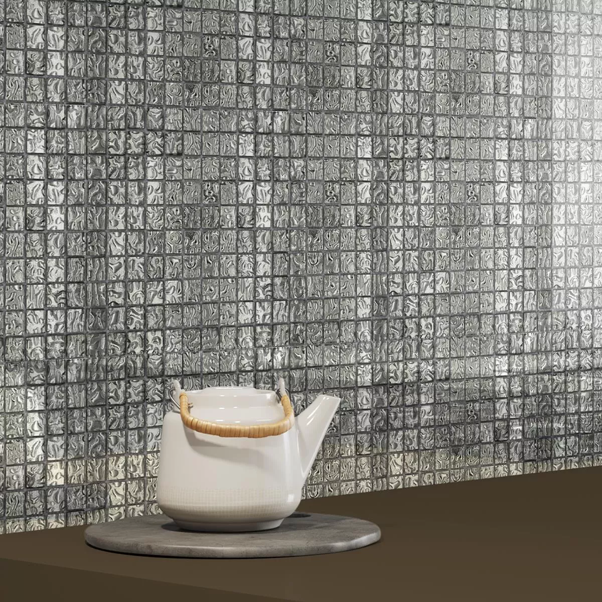 Fordyb dig i den glitrende elegance med vores glasmosaikfliser Aquatic Silver. Disse firkantede mosaik-, væg- og gulvfliser med en stenstørrelse på 23x23 mm giver dit interiør en tidløs glans. Den blanke overflade og en fugebredde på 2 mm understreger det elegante look.