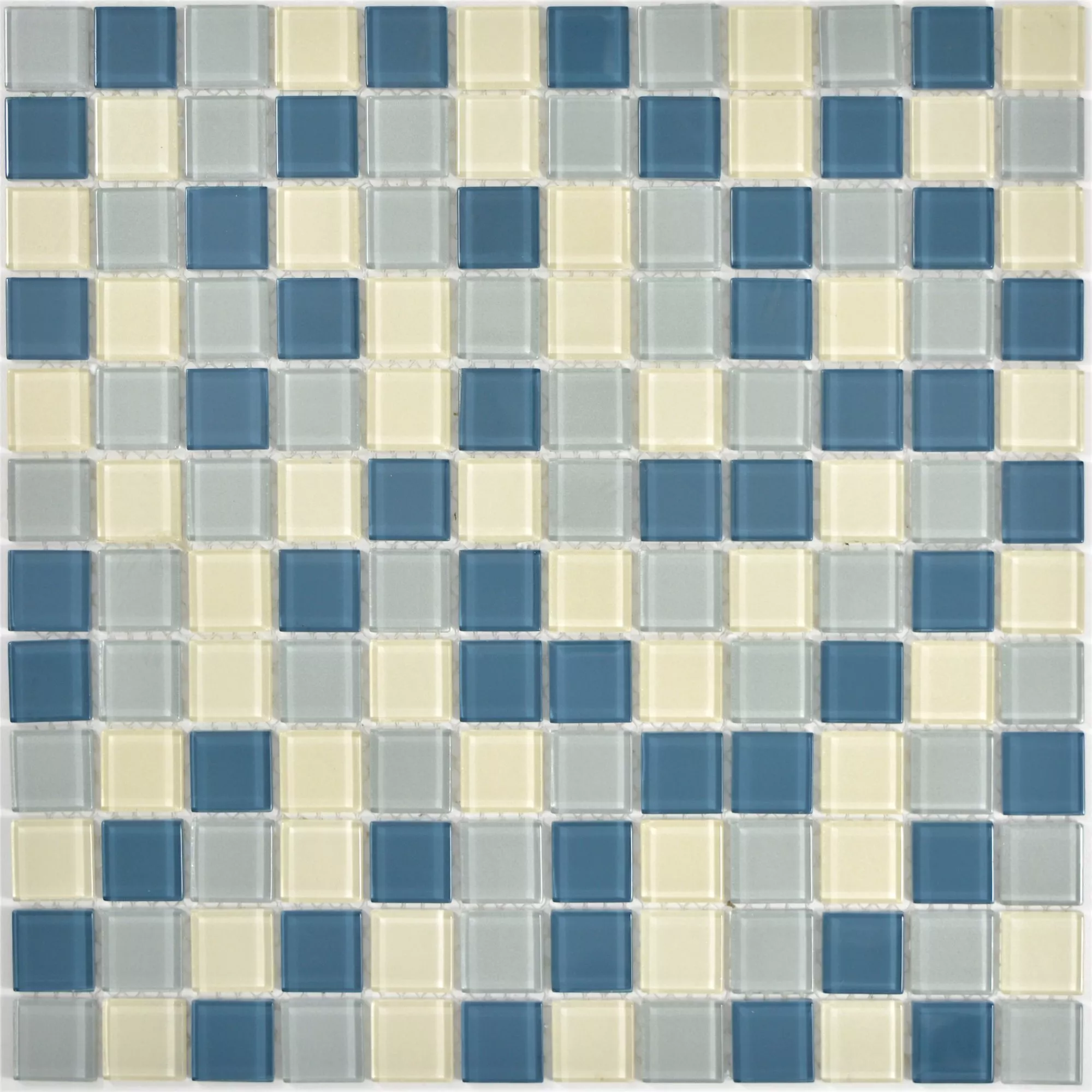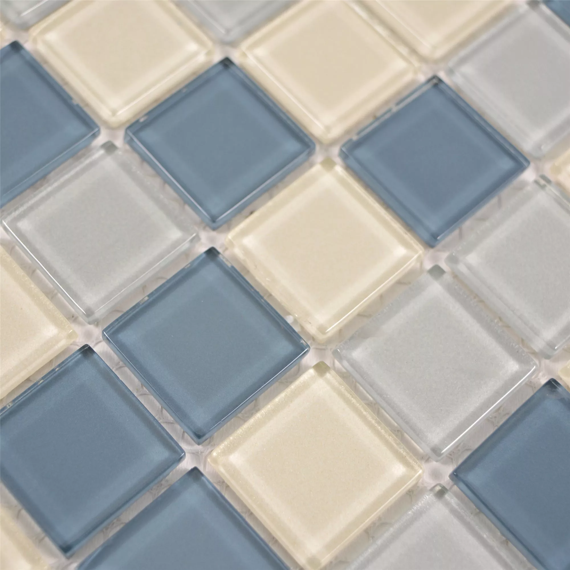 Glasmosaik Fliser Bommel Sølv Hvide Blå