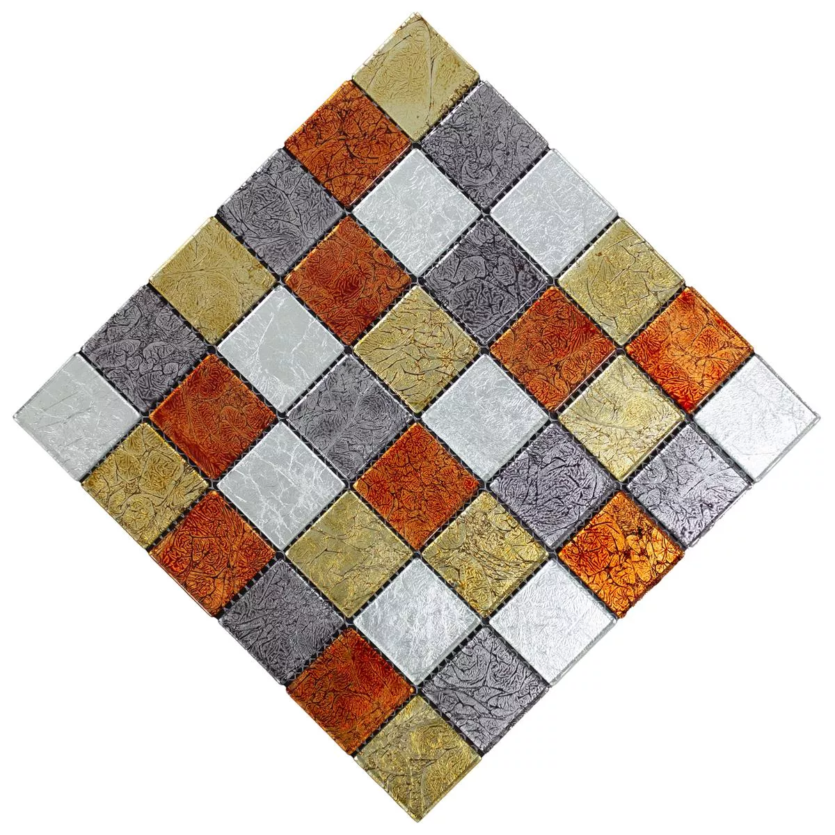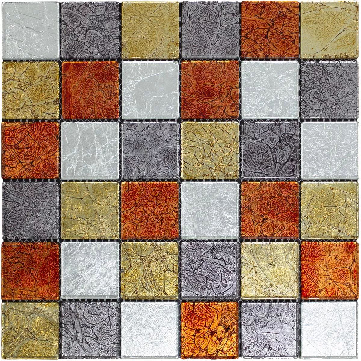 Oplev den dristige elegance af Curlew Black Silver glasmosaikfliser. Disse firkantede vægfliser med en stenstørrelse på 48x48mm giver dit interiør et fascinerende tekstil-look i orange. Den blanke overflade og 4 mm tykkelse giver en unik visuel og taktil oplevelse.