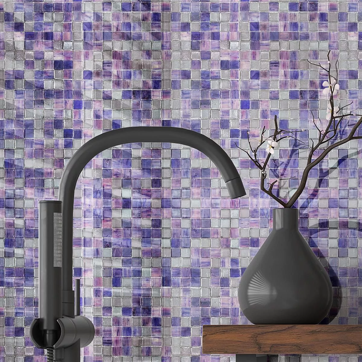 Edessa glasmosaikfliser i en fortryllende lilla blanding, inklusive lavendelnuancer, giver dine rum et elegant og moderne look.