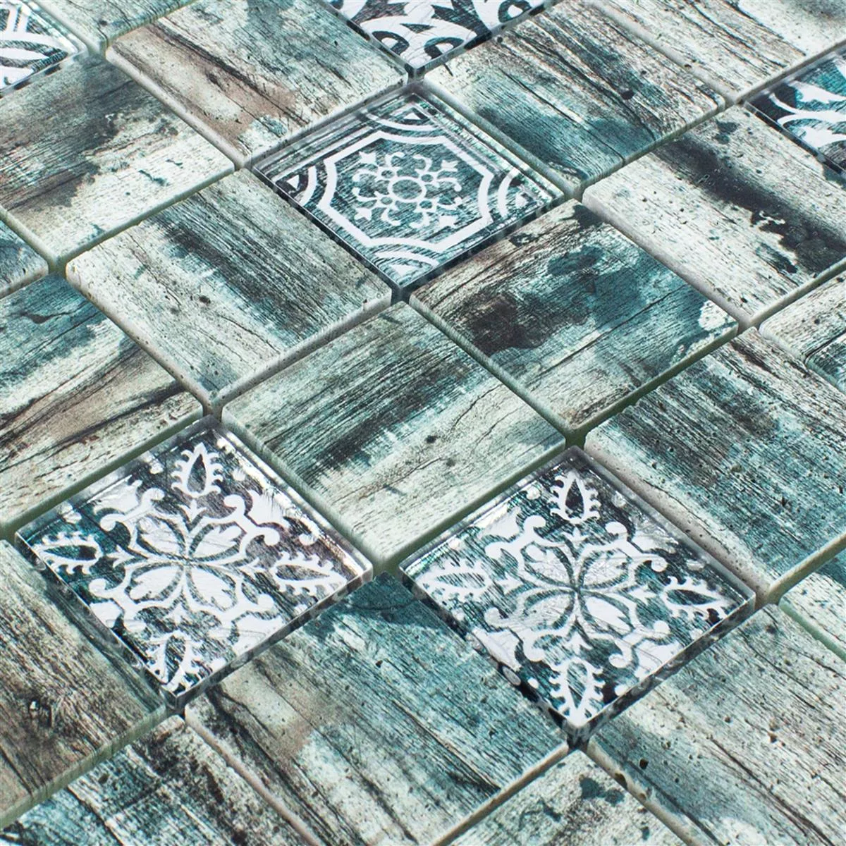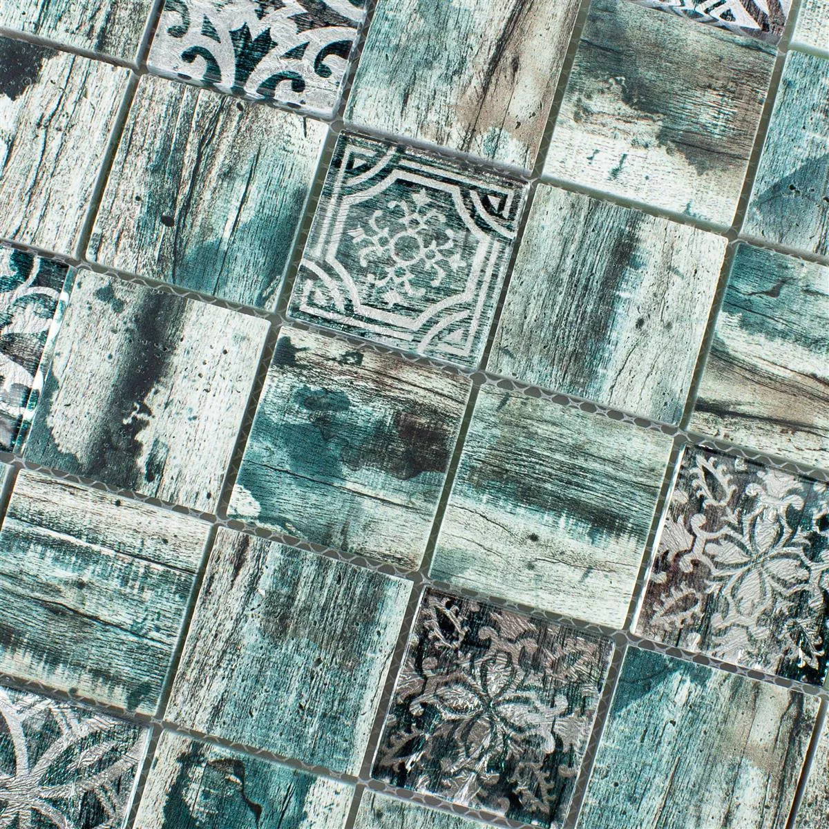 Glasmosaik Fliser Imiteret Træ Norwalk Gra Brun Grøn Q48