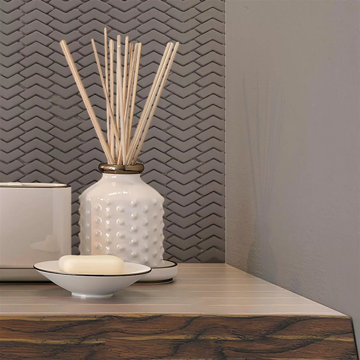 Glasmosaik Fliser Kassandra Gra Brun Fish Bone Måtte