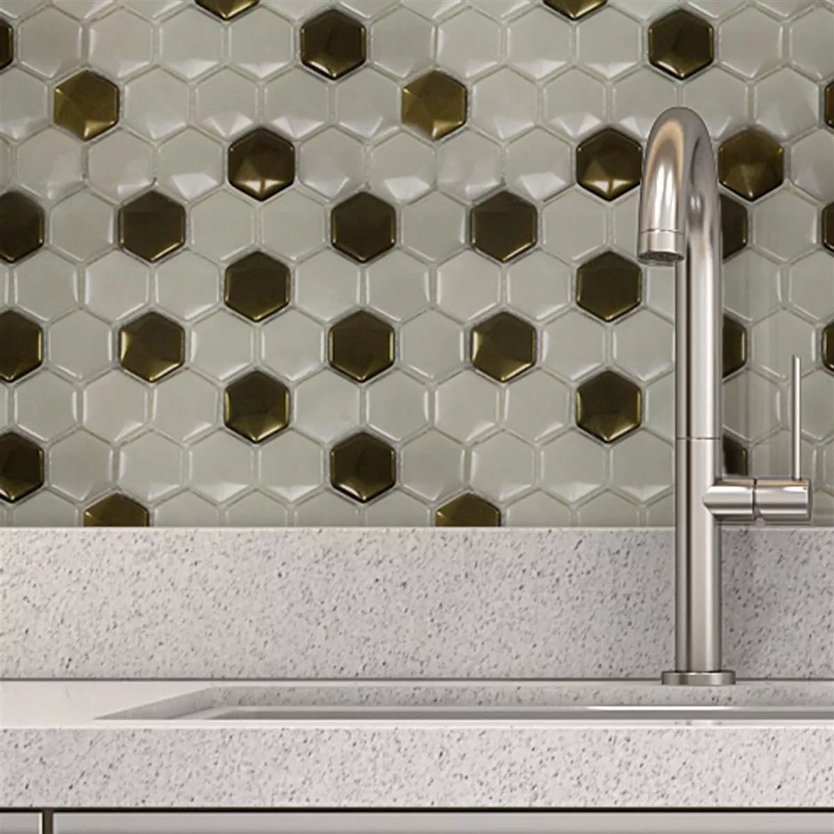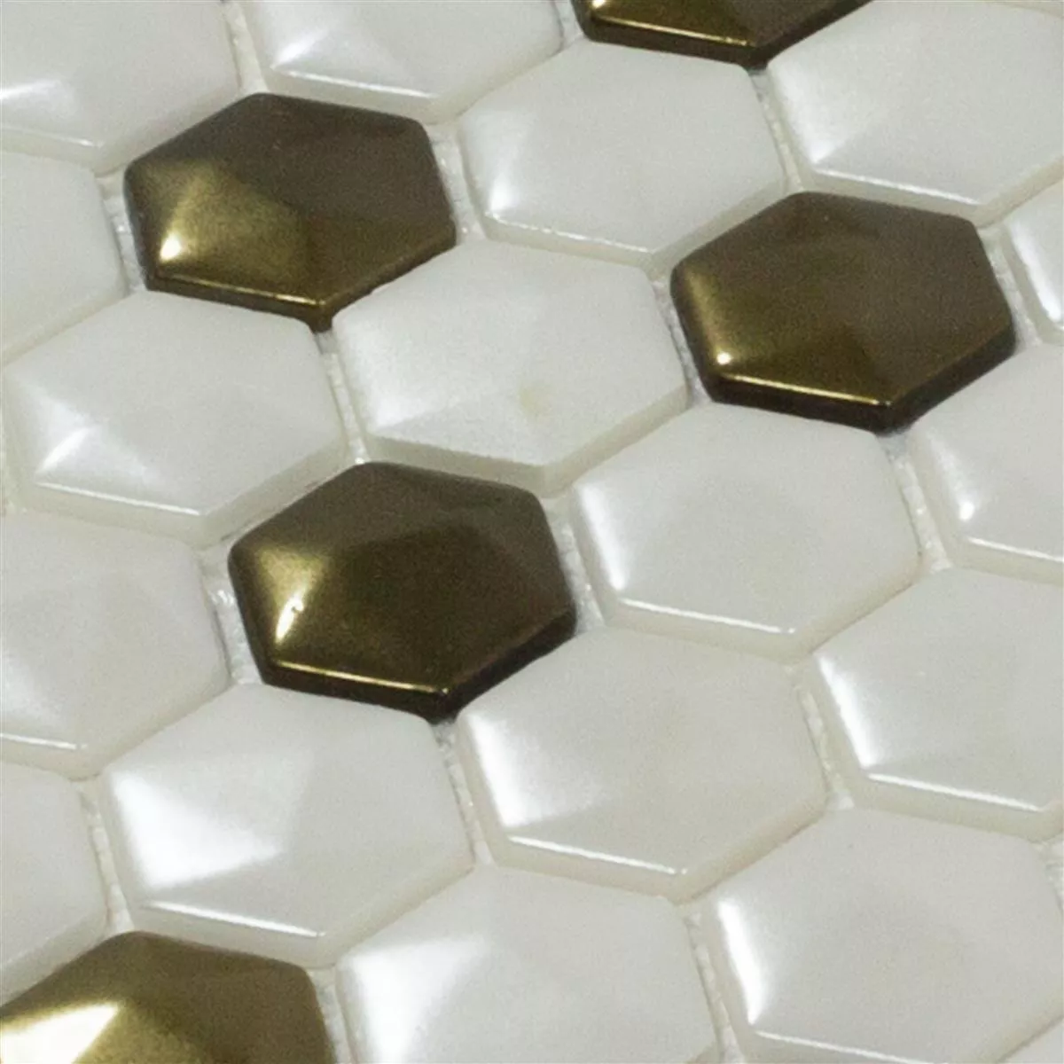Glasmosaik Fliser Las Vegas Hexagon 3D Hvid Guld