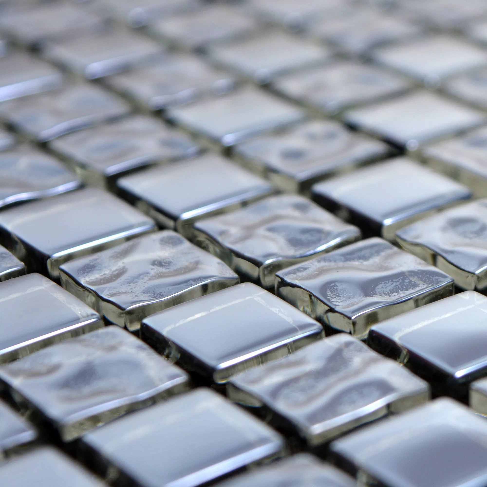 Mosaikfliserne fås i guld- og sølvfinisher og er ideelle som badeværelsesfliser. Overfladen er besat med små, glasagtige sten. Matte og skinnende sten står pænt på linje med forskellige kombinationer i en harpiksholder. Denne kombination skaber en effekt, der minder om vandoverfladen i en flod. Et lysspil, som nogle steder skinner gennem vandet og andre steder brydes.