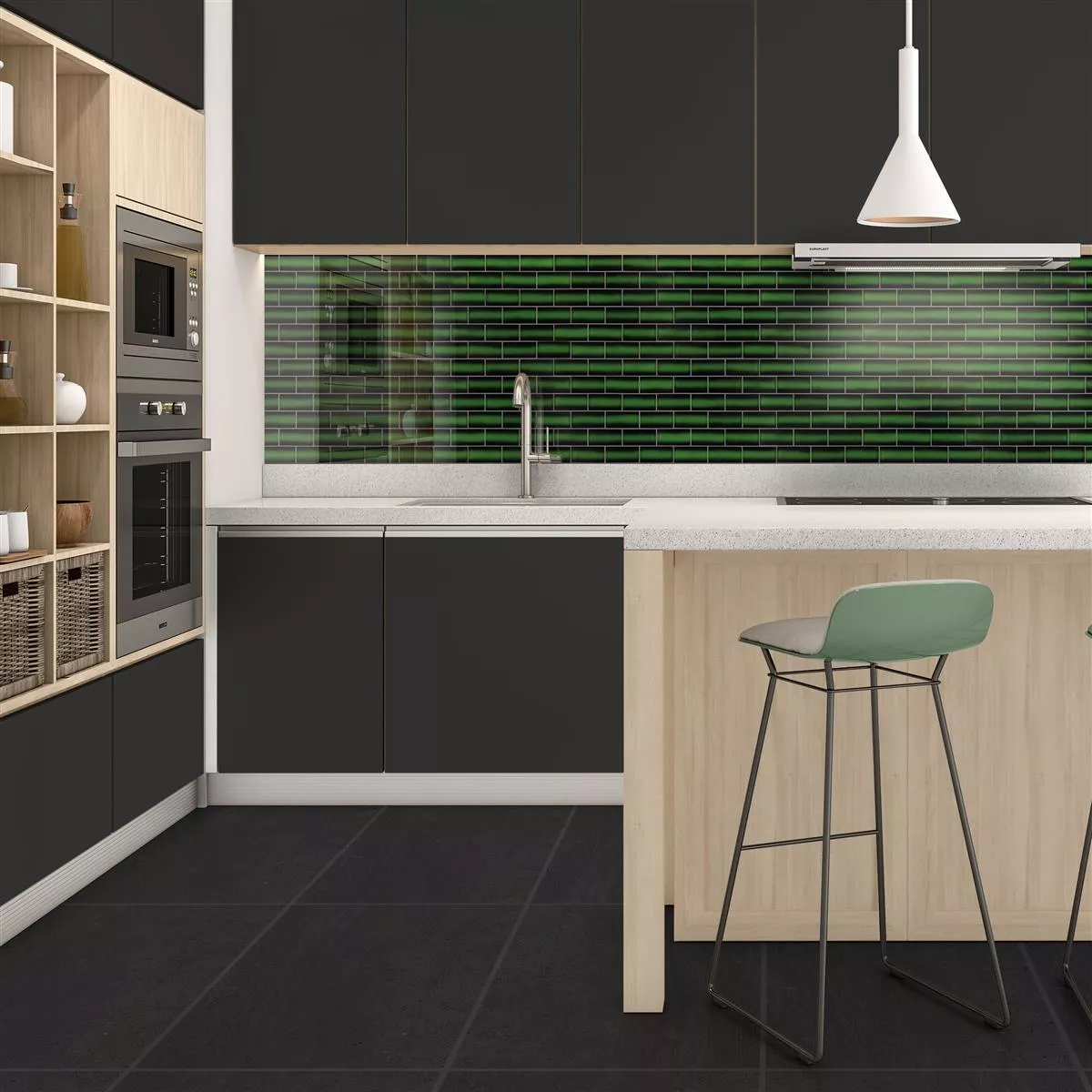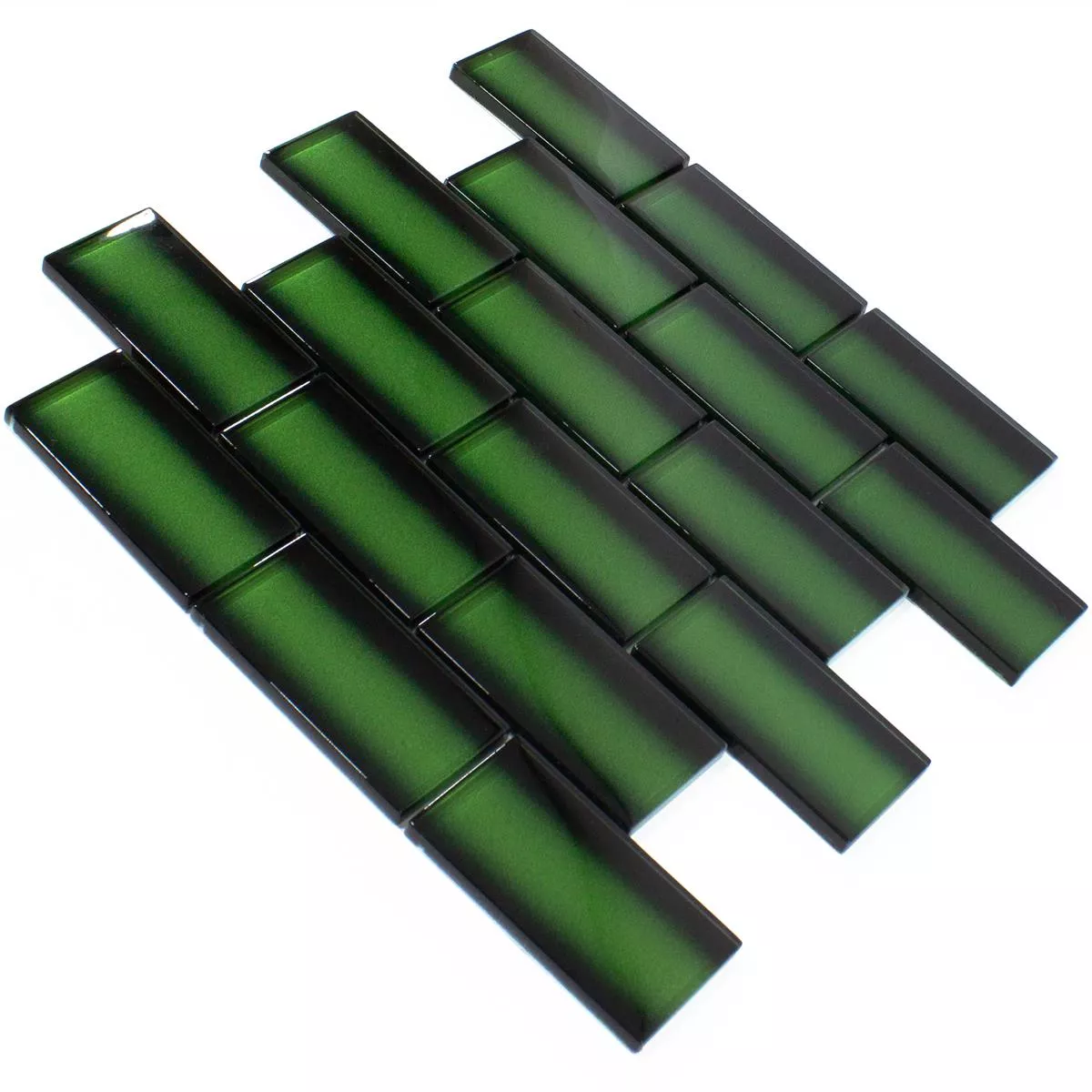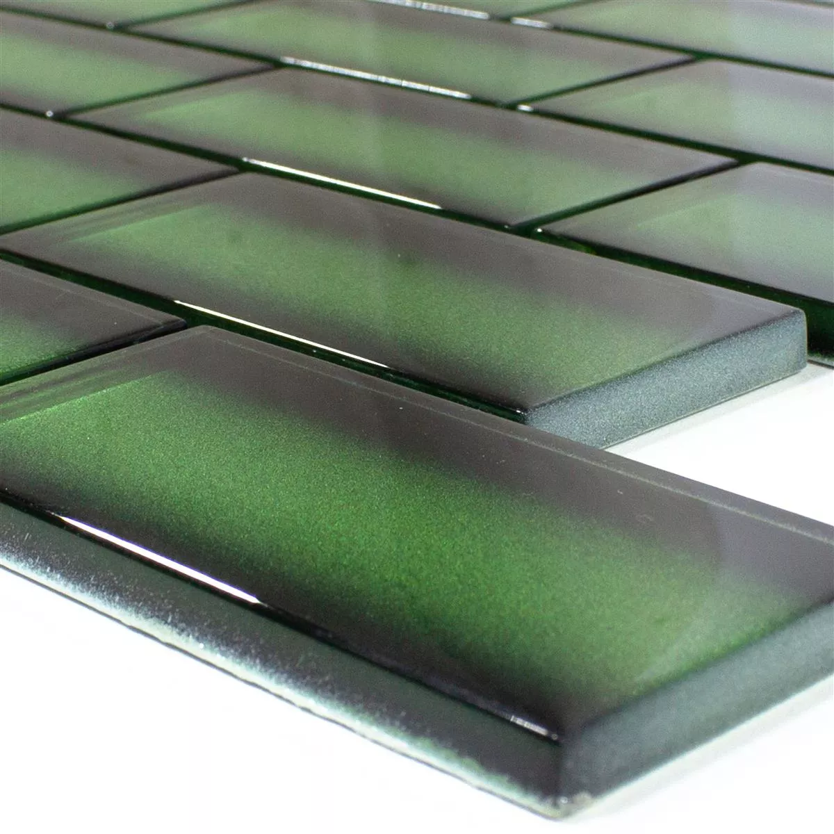 Fliserne er lavet af glas af høj kvalitet, som er stærkt og holdbart. Farven på fliserne er nøje udvalgt for at skabe en harmonisk og beroligende stemning i ethvert rum. Det smaragdgrønne og grønne på fliserne passer godt sammen med mange interiørstile og kan bruges både som accent og som hovedfarve.