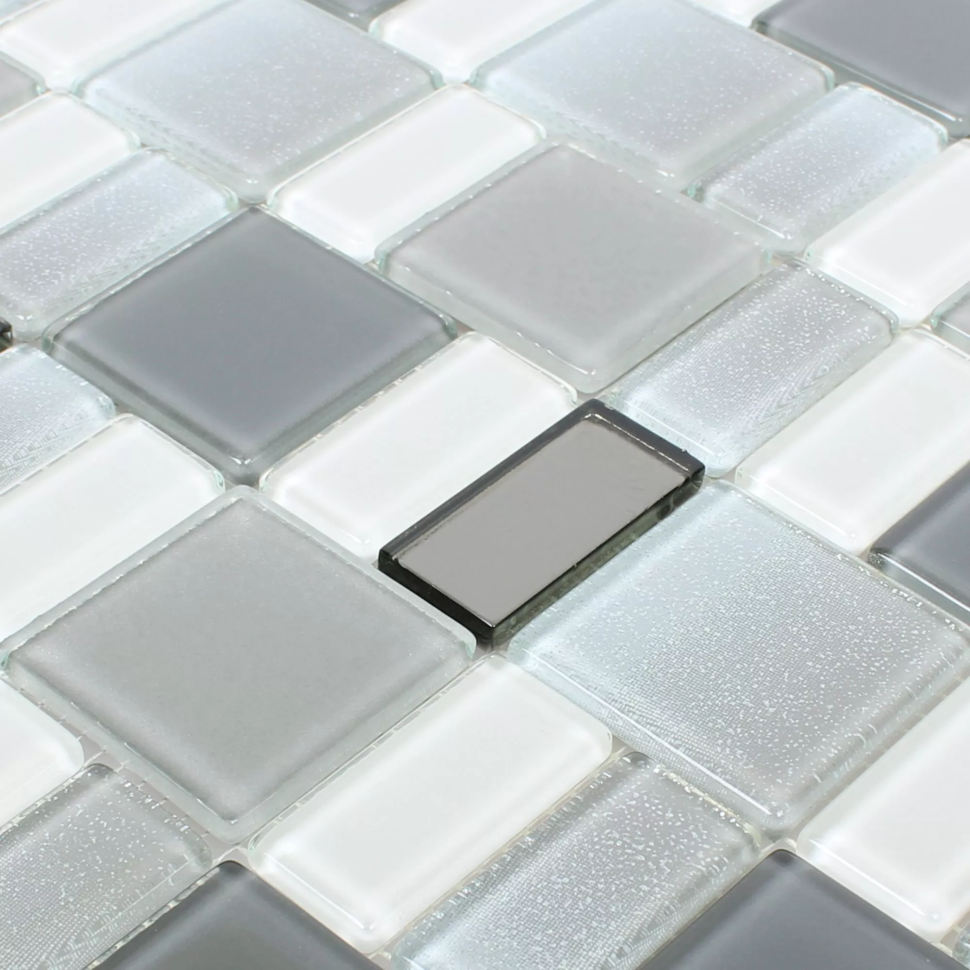Glasmosaikfliserne Peacock Silver Iridescent gør ethvert brugsområde til et mere attraktivt sted og giver det et ædelt og velplejet indtryk.