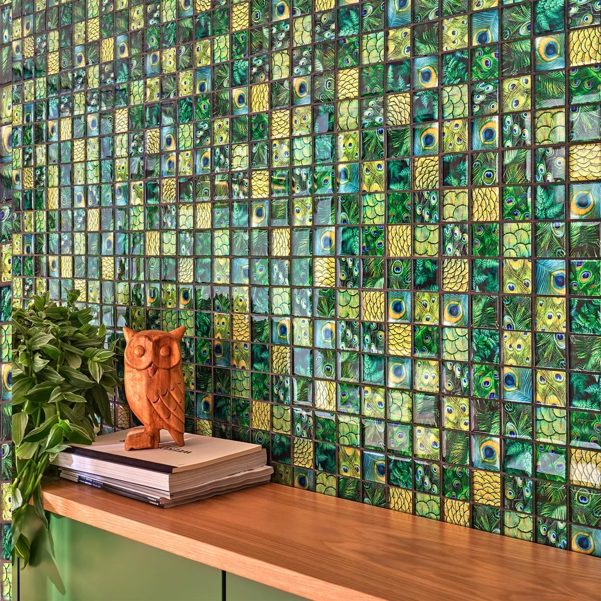 Ikke kun på badeværelset eller i køkkenet, men også i andre rum som stuen, gangen, vaskerummet eller opbevaringsrummet, kan du tilføje fantastiske detaljer med mosaikfliser fra Peafowl-serien. Nyd kombinationen af funktionalitet og æstetik, der vil forbedre dit hjem og give det nyt liv.