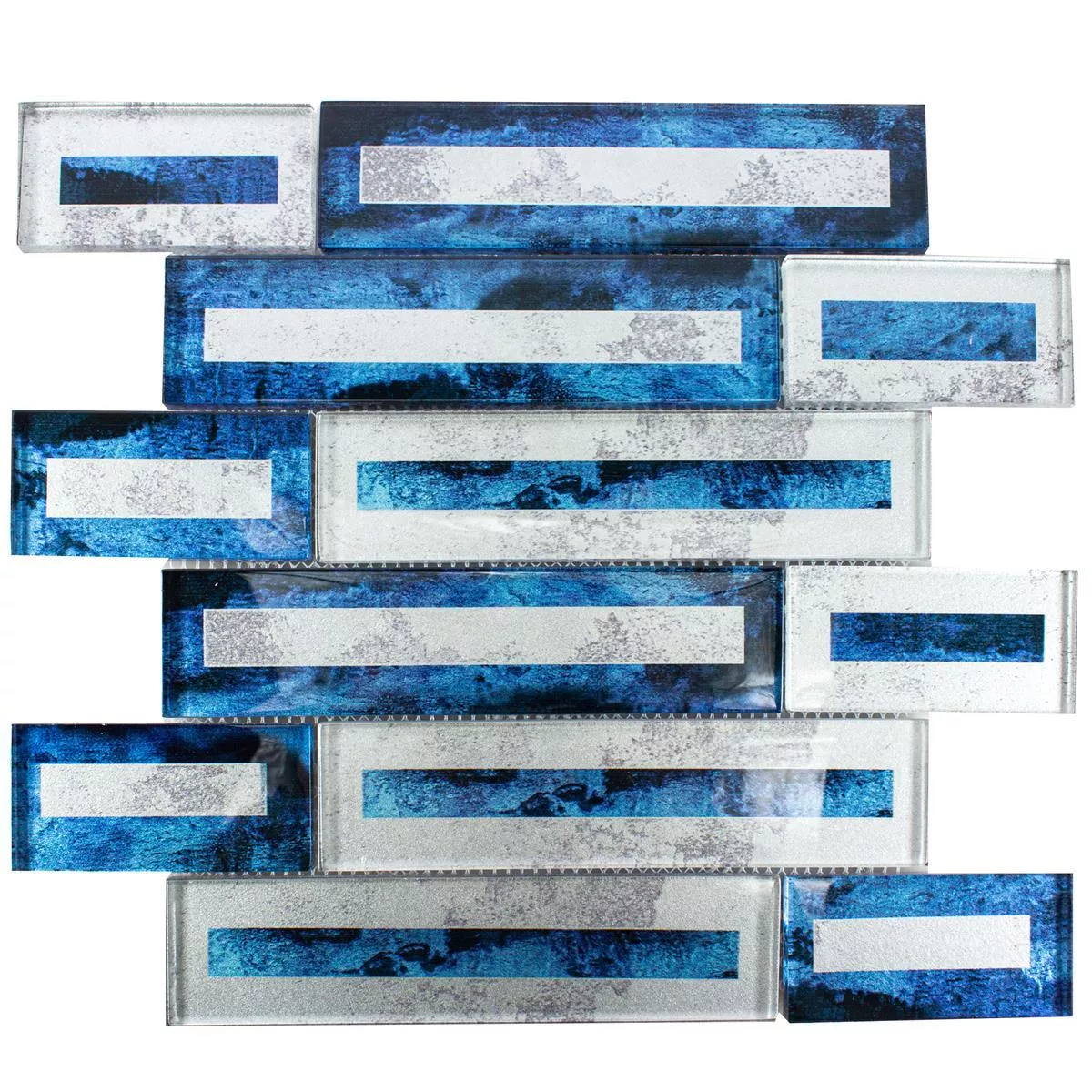 Romans glasmosaikfliser i blåt og sølv kombinerer stilfuld æstetik med praktiske egenskaber. Disse skinnende fliser lavet af glas af høj kvalitet skaber en luksuriøs og moderne atmosfære i ethvert rum takket være deres 2D-look.