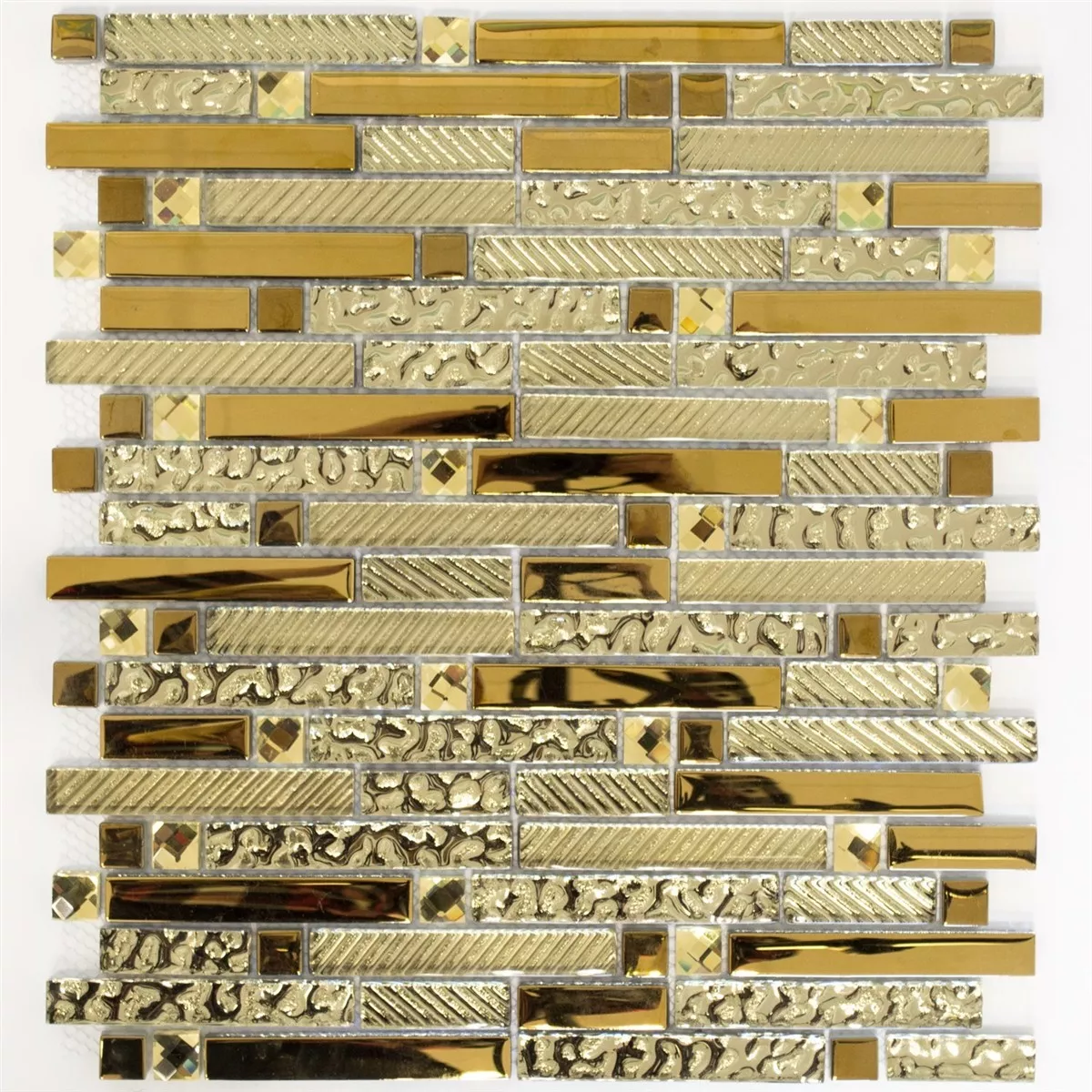 GLAS MOSAIKKLISER STRUKTUR MIX GULD 15X62X8MM
