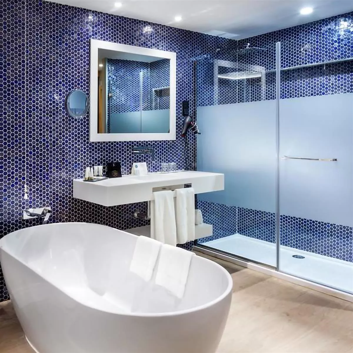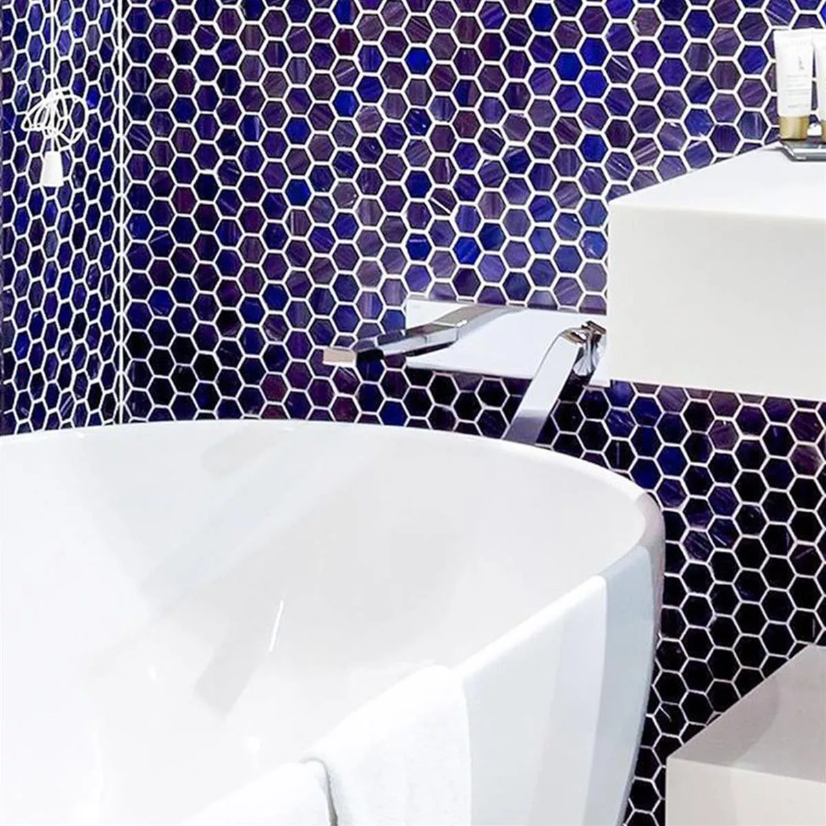 Glasmosaikfliserne fra Hexagonal-kollektionen er perfekt skræddersyet til dine behov. Denne flise er ikke kun ekstremt alsidig, men også særligt holdbar. Med sine vandafvisende, frostsikre og vandtætte egenskaber er den ideel til swimmingpools, permanent våde områder og endda som bagplade til køkkener og badeværelser.