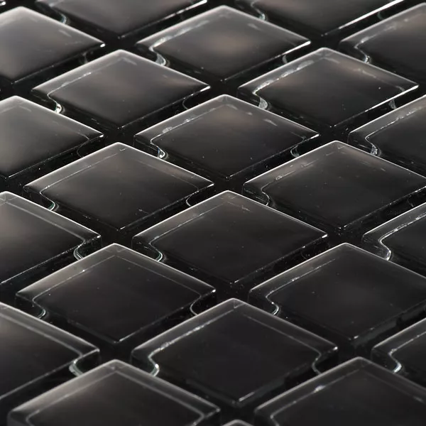 Glasmosaik Fliser Uni 23x23x8mm Sort