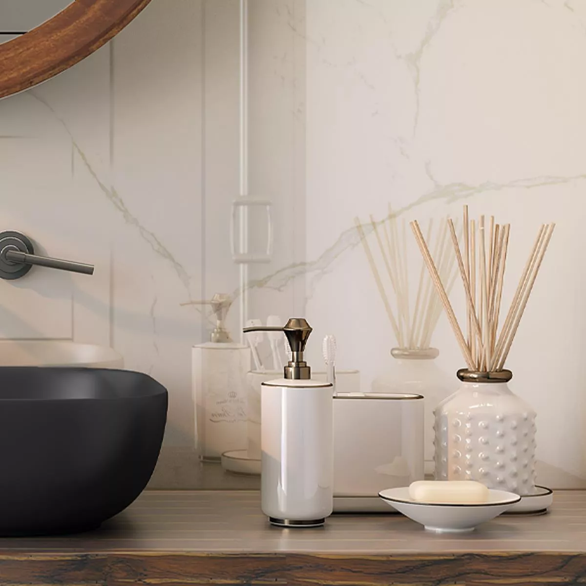 Disse fliser er det perfekte valg for alle, der ønsker at tilføje et strejf af luksus og eksklusivitet til deres hjem uden at ofre funktionalitet og nem vedligeholdelse.
