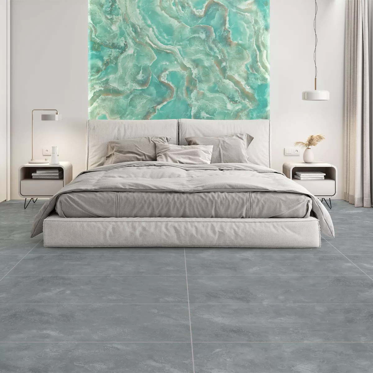 Cortina-fliserne kombinerer betonens robuste æstetik med porcelænsstentøjets letpleje. Deres matte overflade sikrer en behagelig fornemmelse og mindsker risikoen for at glide.