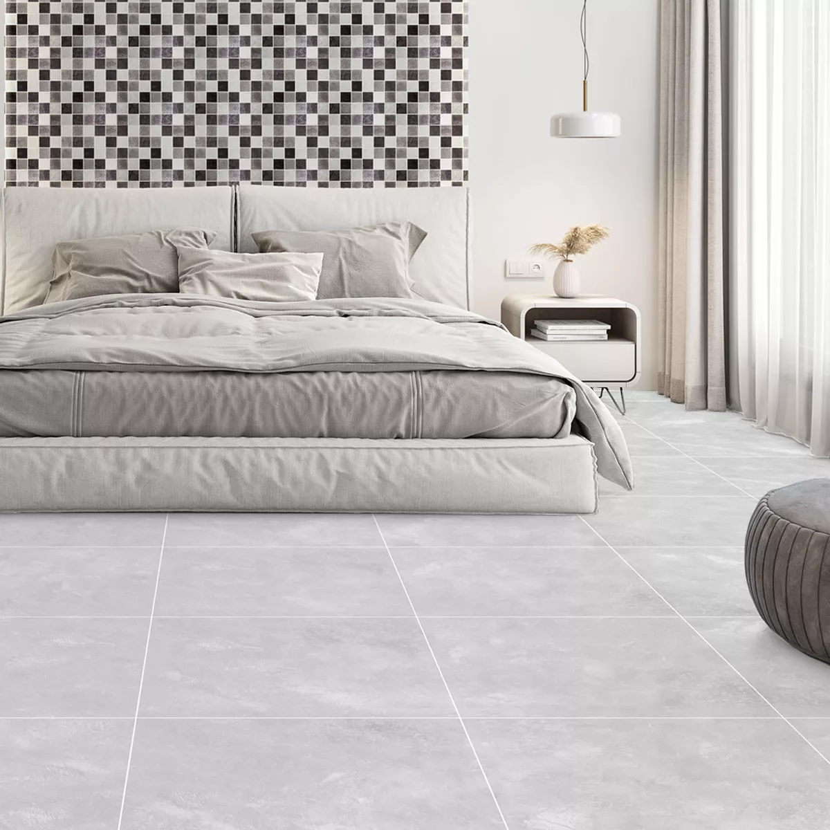 Giv dit hjem et moderne touch med vores Cortina gulvfliser i et mat lysegråt look. Disse alsidige fliser i et kvadratisk format på 60x60cm tilbyder et stilfuldt betonlook, der passer harmonisk ind i forskellige opholdsområder.