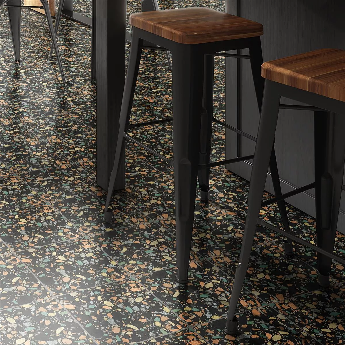 Liberty Colorful Black gulvfliser, der måler 18,5x18,5 cm, kombinerer moderne design med praktisk funktionalitet. Kombinationen af sorte og farverige accenter giver dit værelse en moderne æstetik, mens konstruktionen af højkvalitets porcelænsstentøj tilbyder en langtidsholdbar og attraktiv løsning.