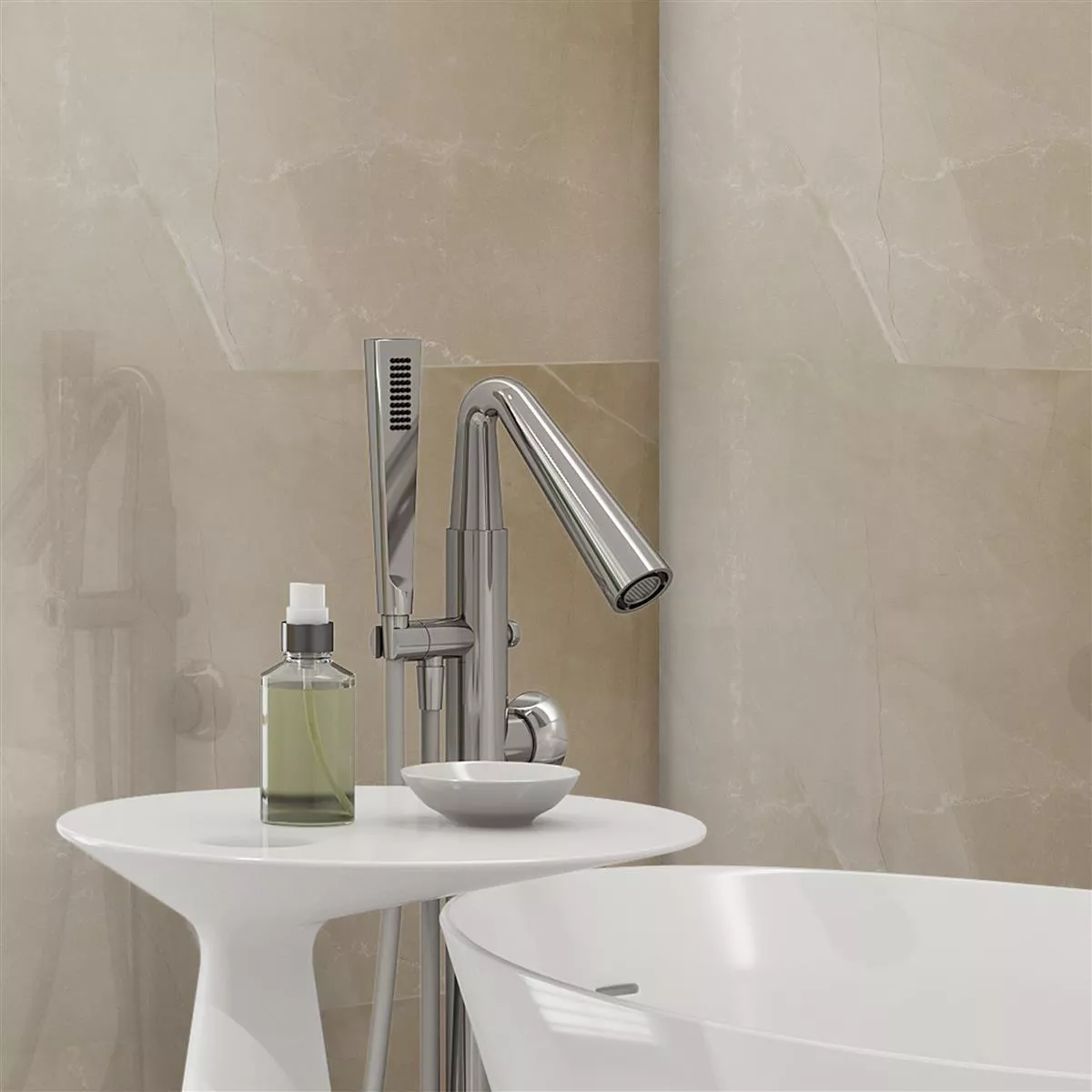 Fliserne er ikke kun vandtætte, men også velegnede til brug i brusevægge og -gulve. Deres polerede overflade tilføjer et ekstra strejf af luksus og premium design.