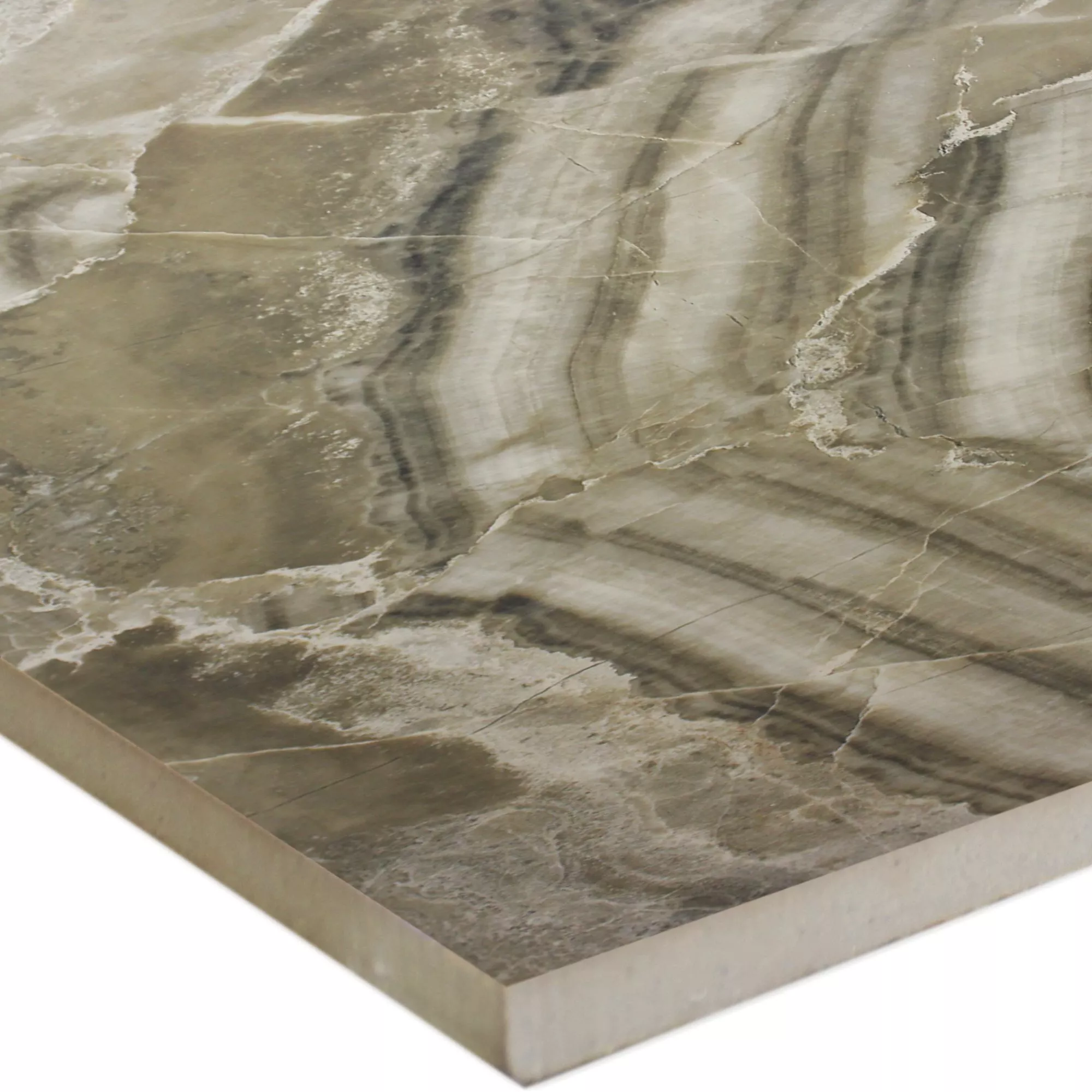 Fliserne var lavet af kvalitativt porcelænsstentøj. Panelerne blev maskinskåret og holdt formen rektangulær. Overfladen er poleret hele vejen igennem og beklædt med en marmor-look folie. Helhedsbilledet rundes af med yderligere glasering af fliserne. Dette understreger desuden marmorlooket og beskadiger ikke filmen under rengøring eller lægning. Flisernes kanter er rettet op, hvilket svarer til en nøjagtig 90° vinkel. Dette optimerer layoutet og sikrer en konsekvent lige overflade, når panelerne er på linje. Som et resultat er gulvet praktisk talt uden huller.