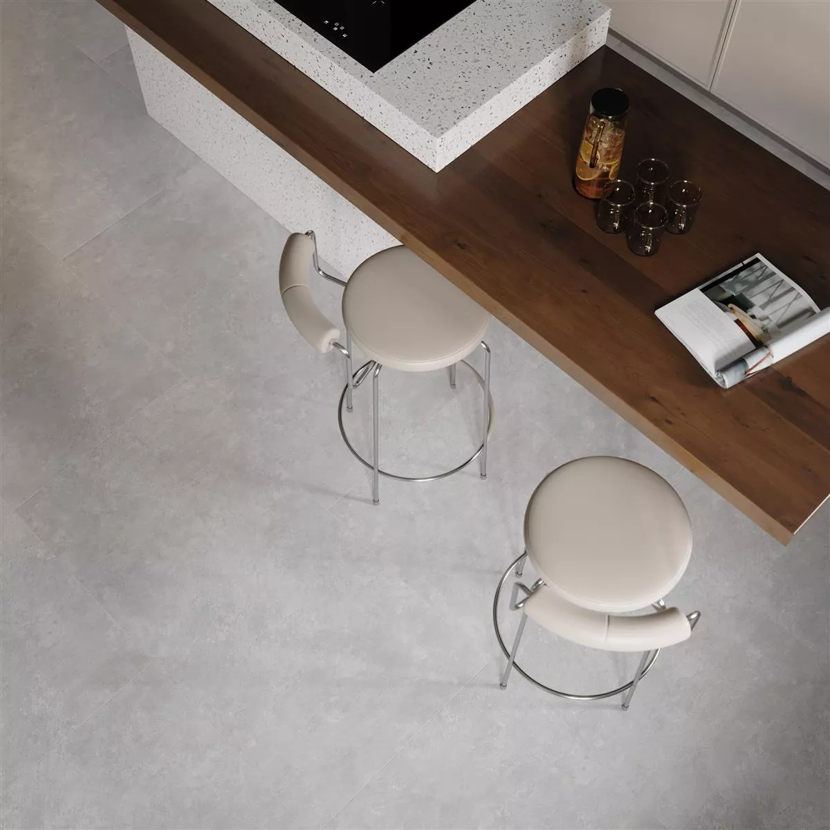 Tritons porcelænsstentøjsgulvfliser i elegant grå kombinerer moderne design med høj funktionalitet. Med sit tiltalende betonlook skaber den en tidløs og urban atmosfære, der passer harmonisk ind i en bred vifte af opholds- og arbejdsområder. Den matte, glaserede overflade giver ikke kun flisen en elegant fornemmelse, men sikrer også nem rengøring.