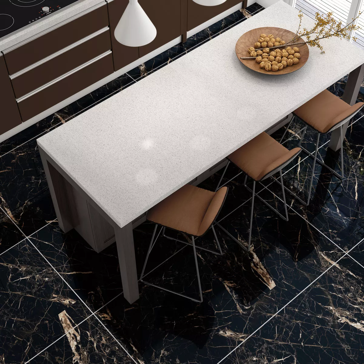 Tilføj et strejf af luksus til dit hjem med vores udsøgte Trento gulvfliser. Disse imponerende sorte fliser med guldaccenter imiterer perfekt marmors tidløse skønhed og bringer elegant elegance til ethvert rum.
