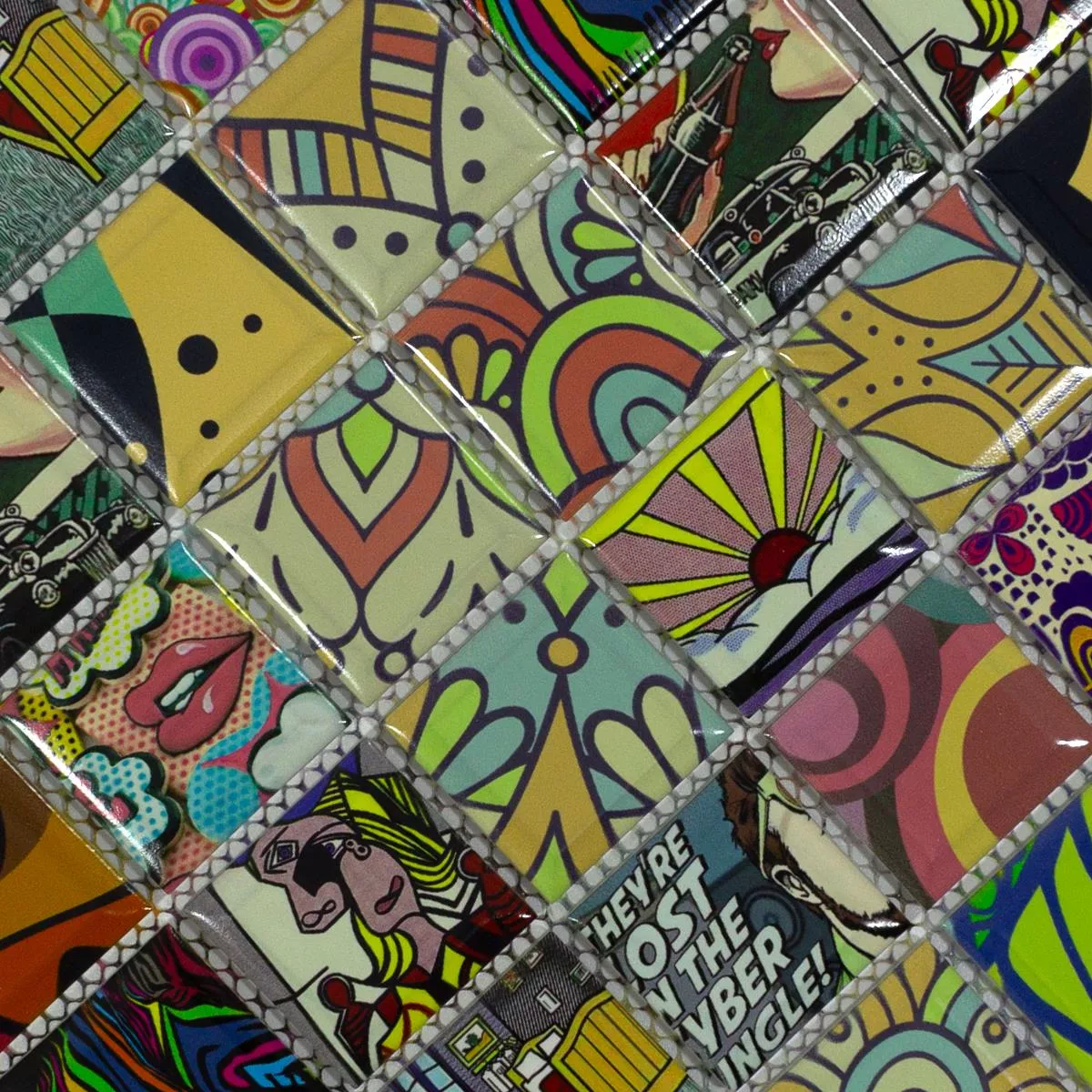 Mosaikflisemodellen Achilles pop art look bliver til noget helt særligt takket være dets detaljerede motiver. De farverige fliser gør enhver overflade til et blikfang og inviterer dig til at se på den. Som et farvet highlight passer de perfekt ind i et moderne boligmiljø og giver det noget bestemt. Modellen fås i to forskellige stilarter. Mens den "farverige" mulighed, med dens sektioner af større kunstværker, næsten ligner et puslespil, som fans af abstrakt kunst vil kunne lide, er den "farverige duo" modstykke det første valg for fans af tegneserier. For her ser hver flisemåtte ud, som om den fortæller sin egen historie.
