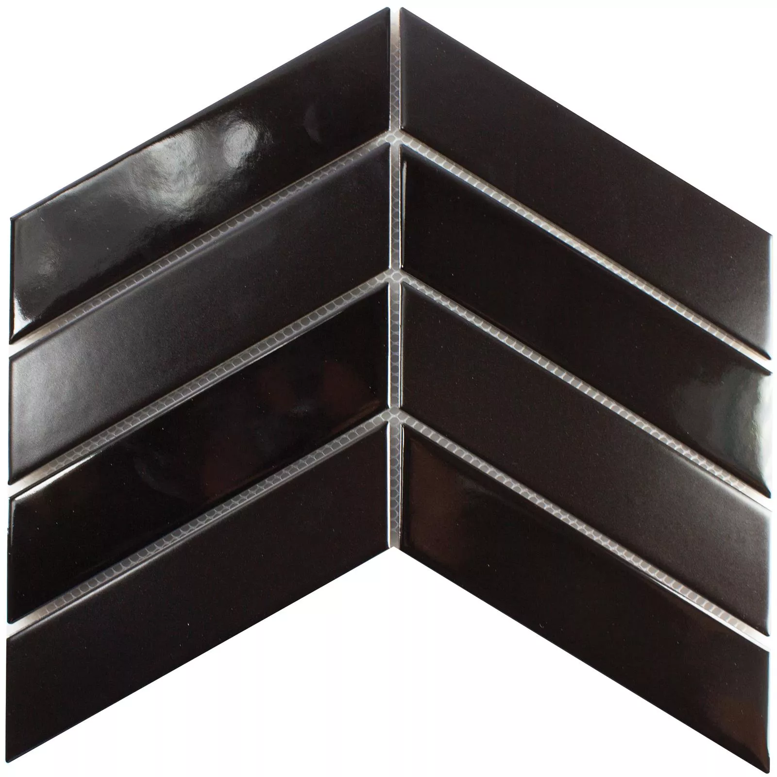 Den keramiske mosaikflise Artesia Herringbone Black leveres i måtter med en måtte med en størrelse på 0,071m². Dette gør monteringen nemmere og sikrer en jævn fordeling af fliserne.