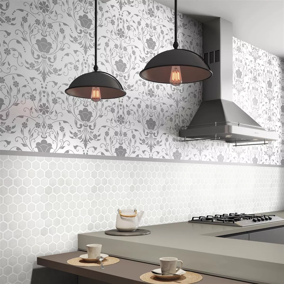Keramik Mosaik Fliser Eldertown Hexagon Hvid