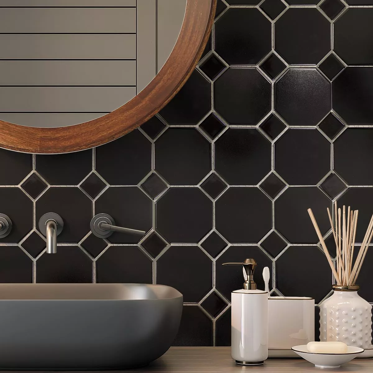 Keramik Mosaik Fliser Octagon Fürstenberg Sort